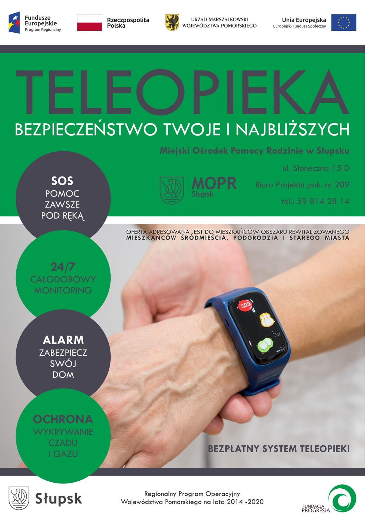 Wsparcie w ramach teleopieki MOPR realizuje w ramach projektu „Usługi Społeczne – innowacyjne i kompleksowe wsparcie dla mieszkańców obszaru rewitalizowanego miasta Słupska” oraz kończącego się w czerwcu bieżącego roku przedsięwzięcia pod nazwą „Dzieciom, rodzicom, seniorom – usługi społeczne dla mieszkańców Słupska”. Oba projekty są współfinansowane z Regionalnego Programu Operacyjnego Województwa Pomorskiego na lata 2014-2020 i realizowane w partnerstwie m.in z Fundacją „Progresja”.