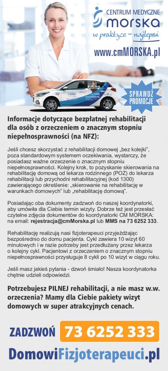 Polecamy serdecznie zapoznanie się z ofertą rehabilitacji domowej Centrum Medyczna Morska, która od niedawna swoją działalność poszerzyła o teren Słupska i okolic.