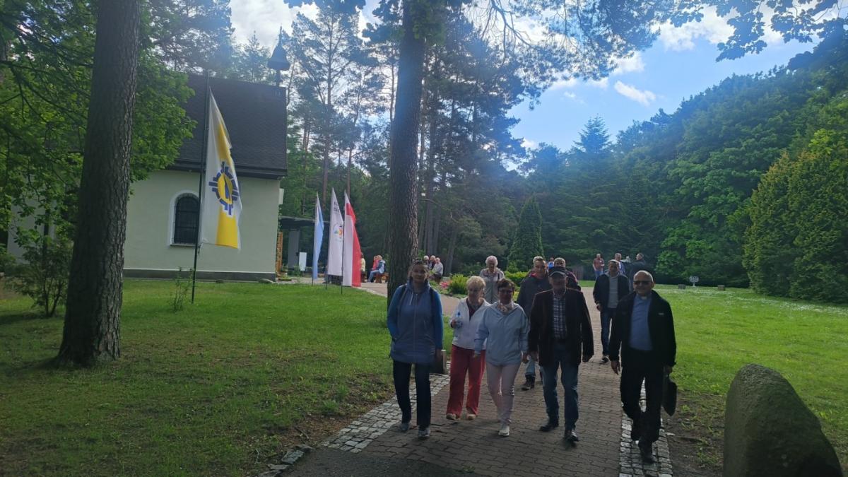 Pierwszym przystankiem naszej pielgrzymki było malowniczo położone Sanktuarium na wzniesieniu Chełmskiej Góry– miejsce wyjątkowe, o głębokim znaczeniu religijnym i historycznym, otulone bukami, dębami i cisami. Mieliśmy zaszczyt uczestniczyć w kameralnej Mszy Świętej odprawionej specjalnie dla naszej grupy przez Ks. Artura Dylewskiego z Parafia Świętej Rodziny w Słupsku, który uczestniczył jako niezastąpiony przewodnik naszej pielgrzymki. Wspólna modlitwa odbyła się w Sanktuarium Przymierza poświęconego w 1991 roku przez Ojca Świętego Jana Pawła II gdzie cisza i skupienie stworzyły atmosferę głębokiej duchowej jedności.