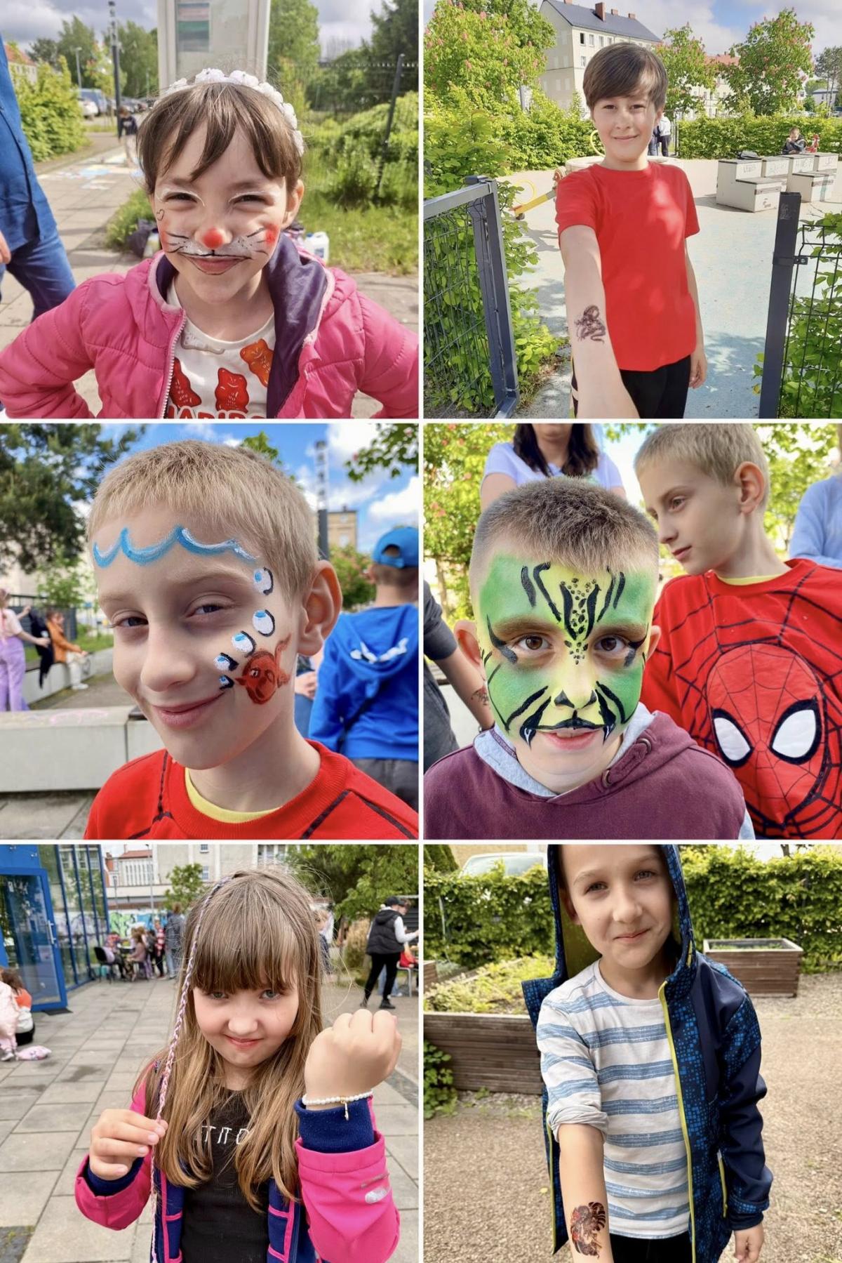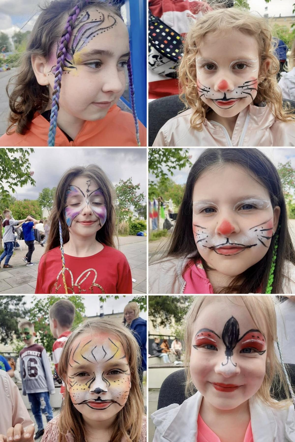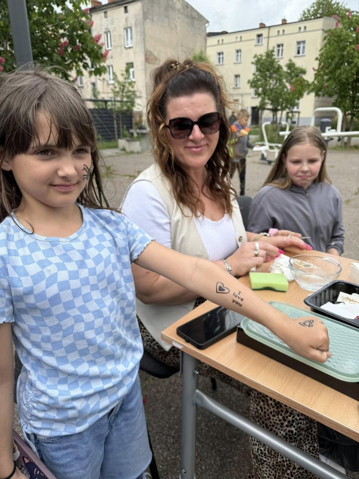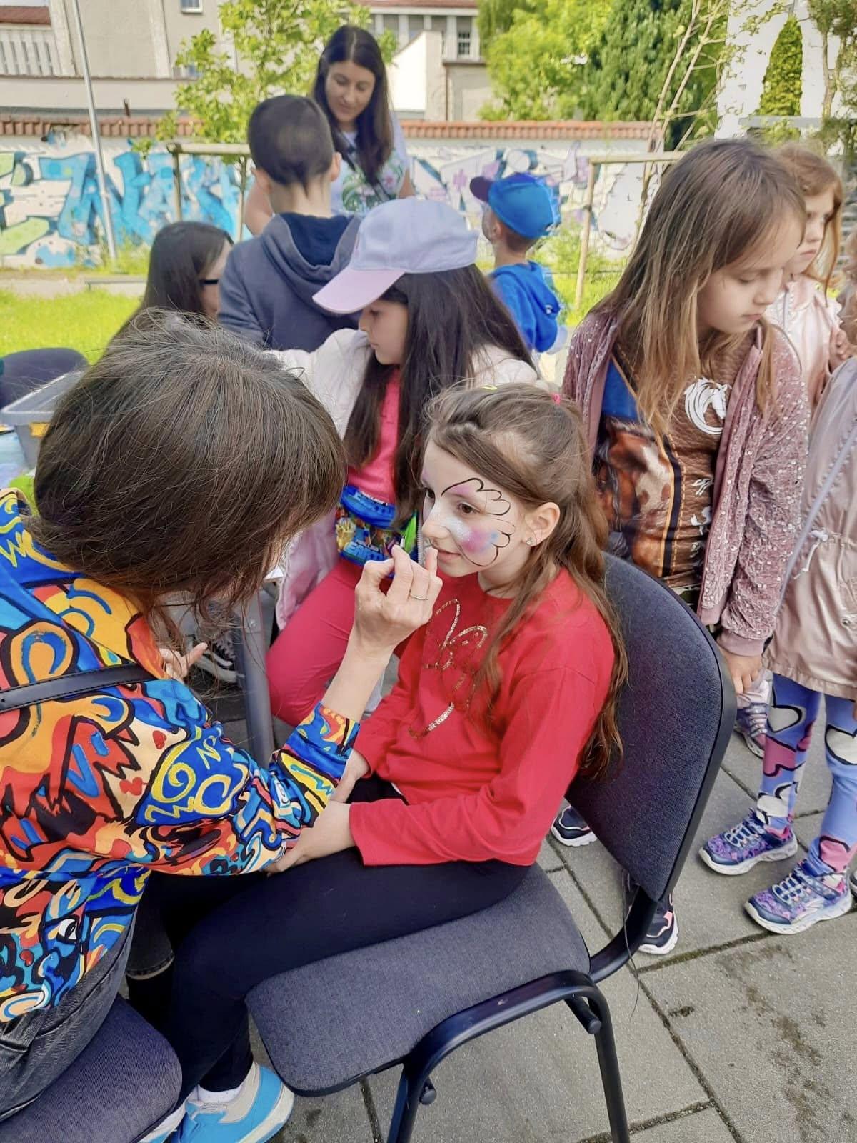 Dzieci z Placówek Wsparcia Dziennego wzięły udział w festynie z okazji Dnia Dziecka. Na młodszych i starszych czekało dużo atrakcji: malowanie twarzy, tatuaże, kolorowe warkoczyki, gry, zabawy, konkursy z nagrodami, bańki mydlane, grill, gofry, owocowe przekąski i wiele innych.