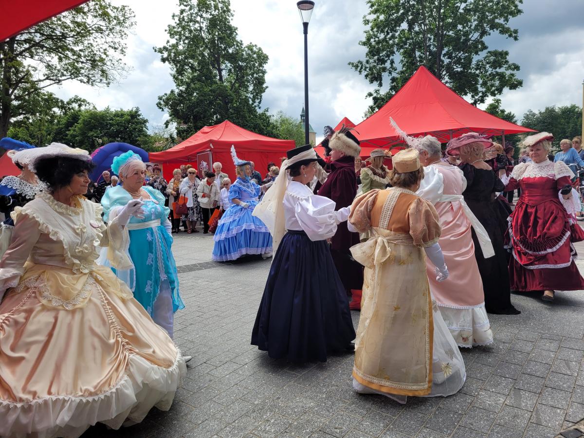 Poloneza i inne tańce zaprezentowało Stowarzyszenie Seniorów Ziemi Słupskiej „Alternatywa” wraz z kołem historycznym „Belle Epoque” Nie był to tylko pokaz taneczny, ale i wizualny - ręcznie szytych historycznych strojów, które mogliśmy podziwiać.