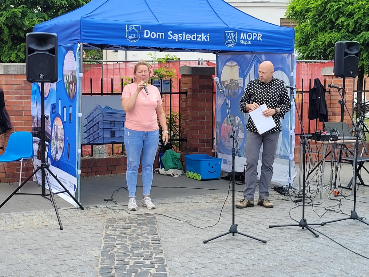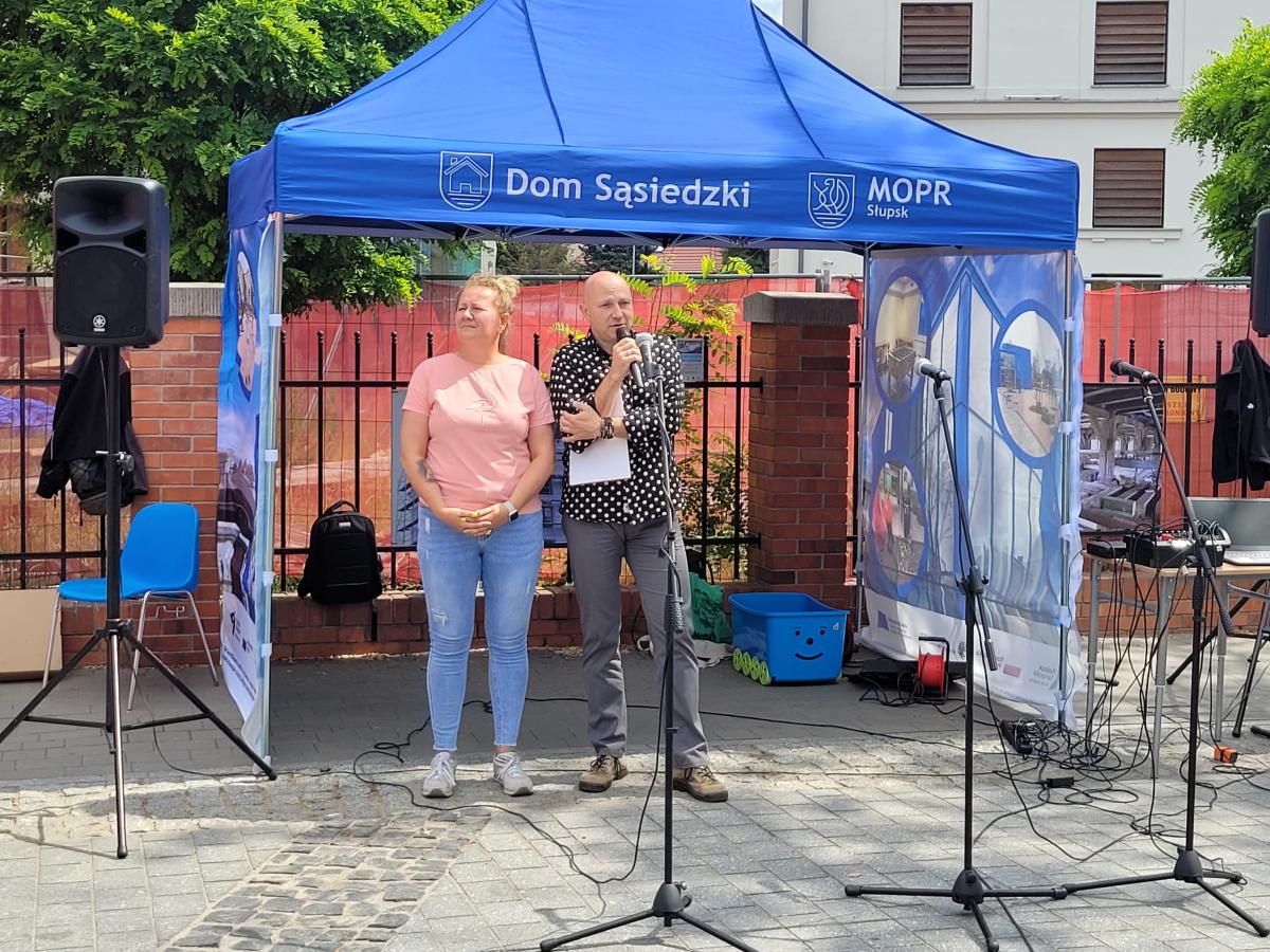 Obecni na wydarzeniu: Dyrektor MOPR Marcin Treder, wraz z Katarzyną Mulawą -Koordynatorką Zespołu Pracy Socjalnej nr 4, uroczyście powitali zgromadzonych gości i zaprezentowali co będzie działo się podczas spotkania informacyjnego.