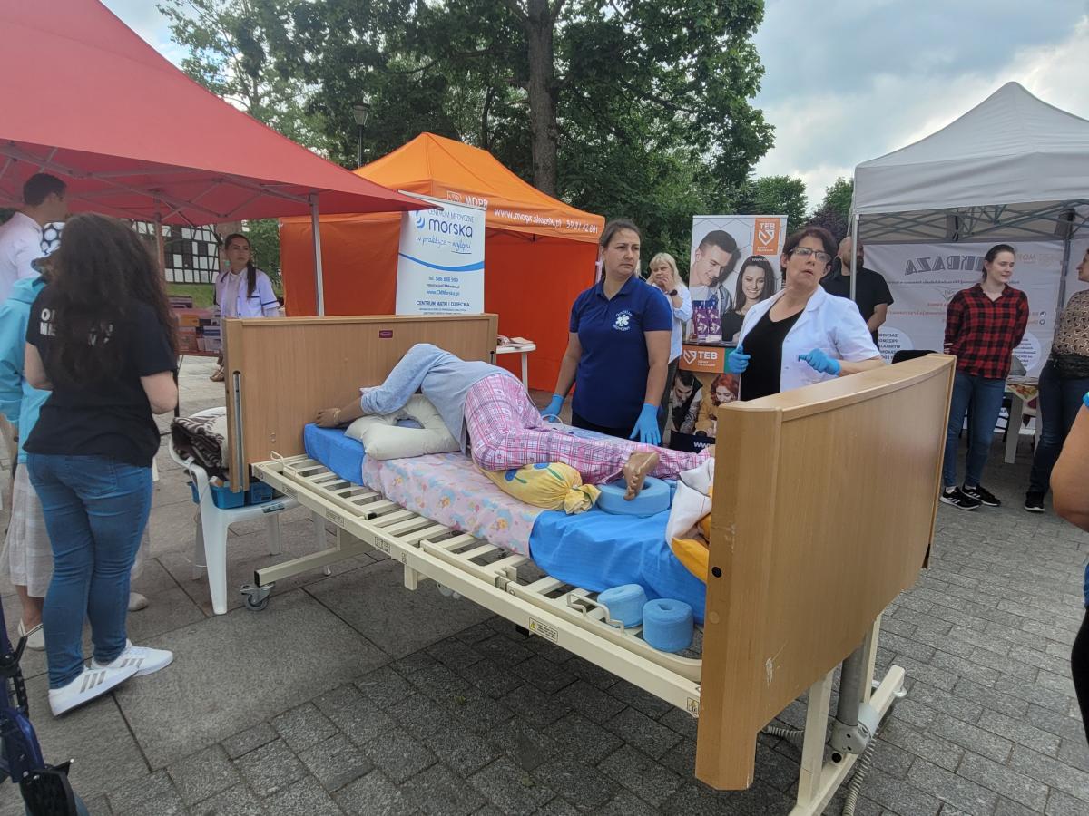 - Pomorska Medyczna Szkoła Policealna - Słuchacze szkoły zaprezentowali m.in. przełożenie chorego na wózek inwalidzki, wymianę cewnika, pielęgnację rurki tracheotomijnej, wstrzyknięcia przeciwzakrzepowe, zabezpieczenie rany.