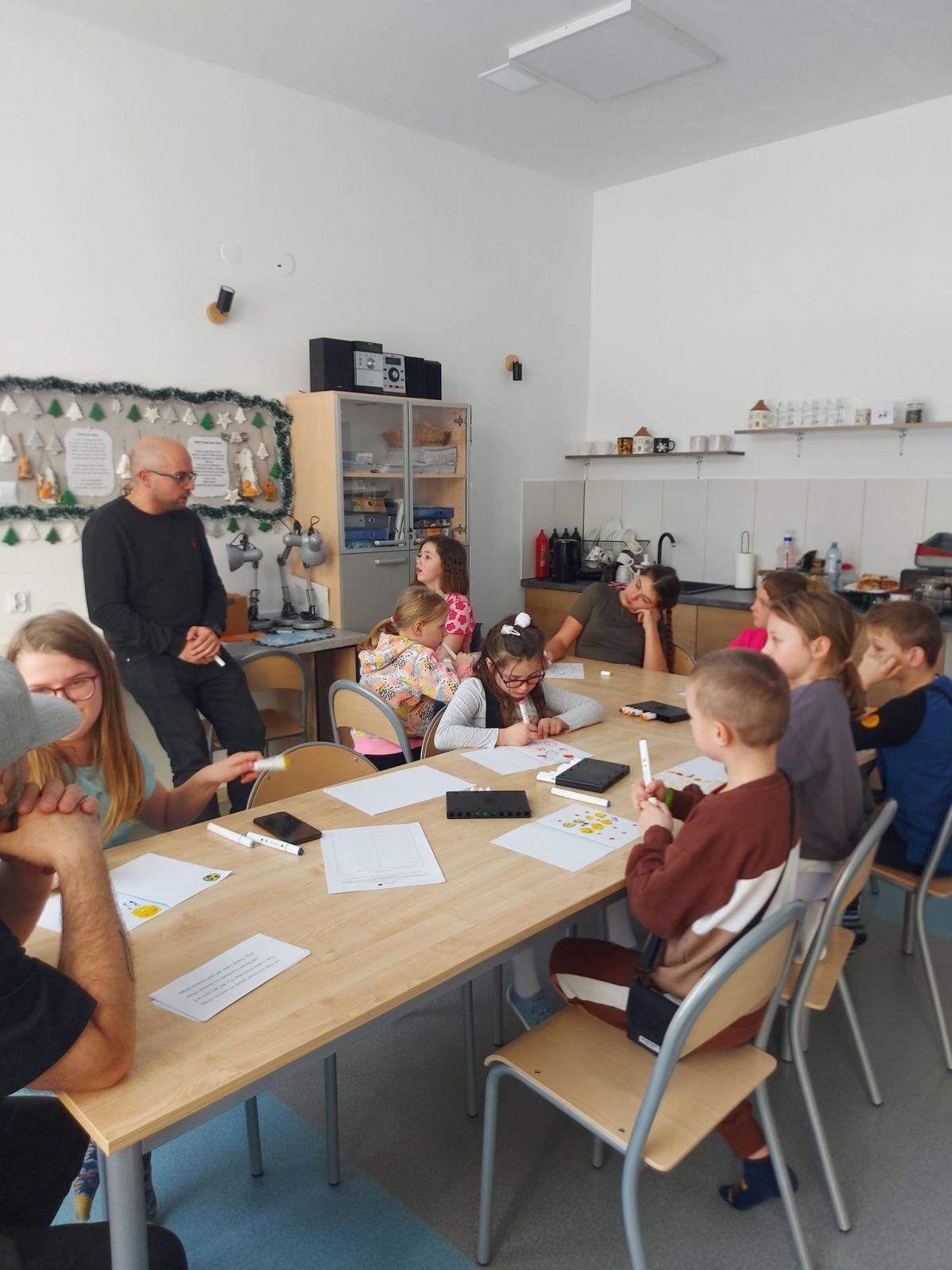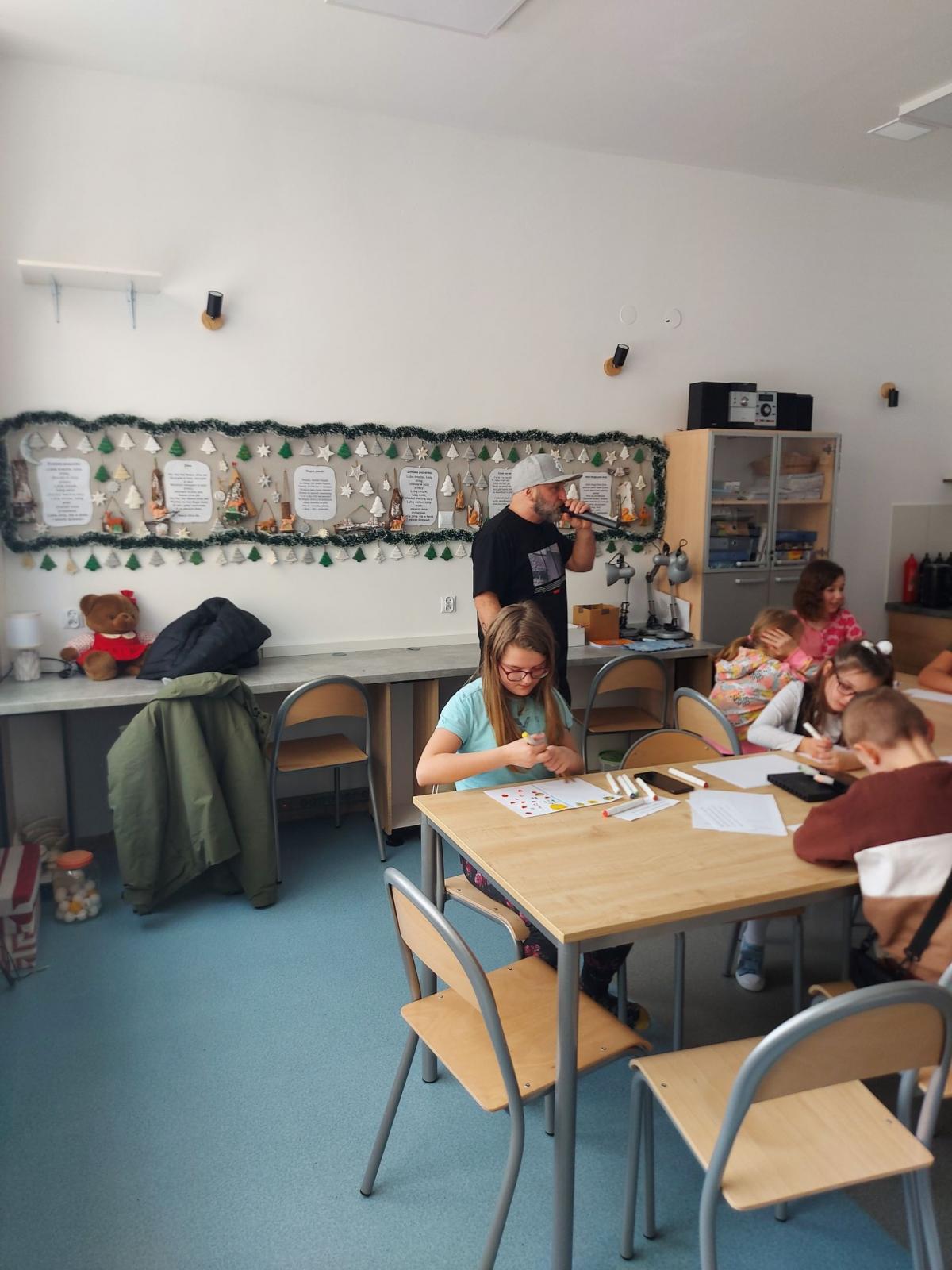 - dzieci wzięły udział w "Sensorycznej Zimie”, które przeprowadziła Agnieszka Kałuża-Horbaczewska z Neuron - Gabinet Terapii Sensorycznej. Przy dźwiękach muzyki Vivaldiego dzieci tworzyły zimowe rysunki, a także wykonywały zadania wspierające rozwój sensoryczny,