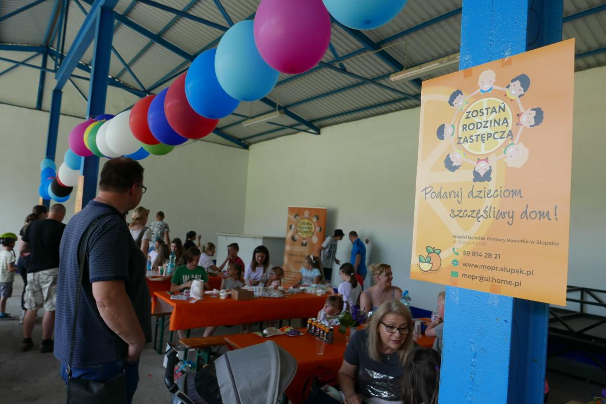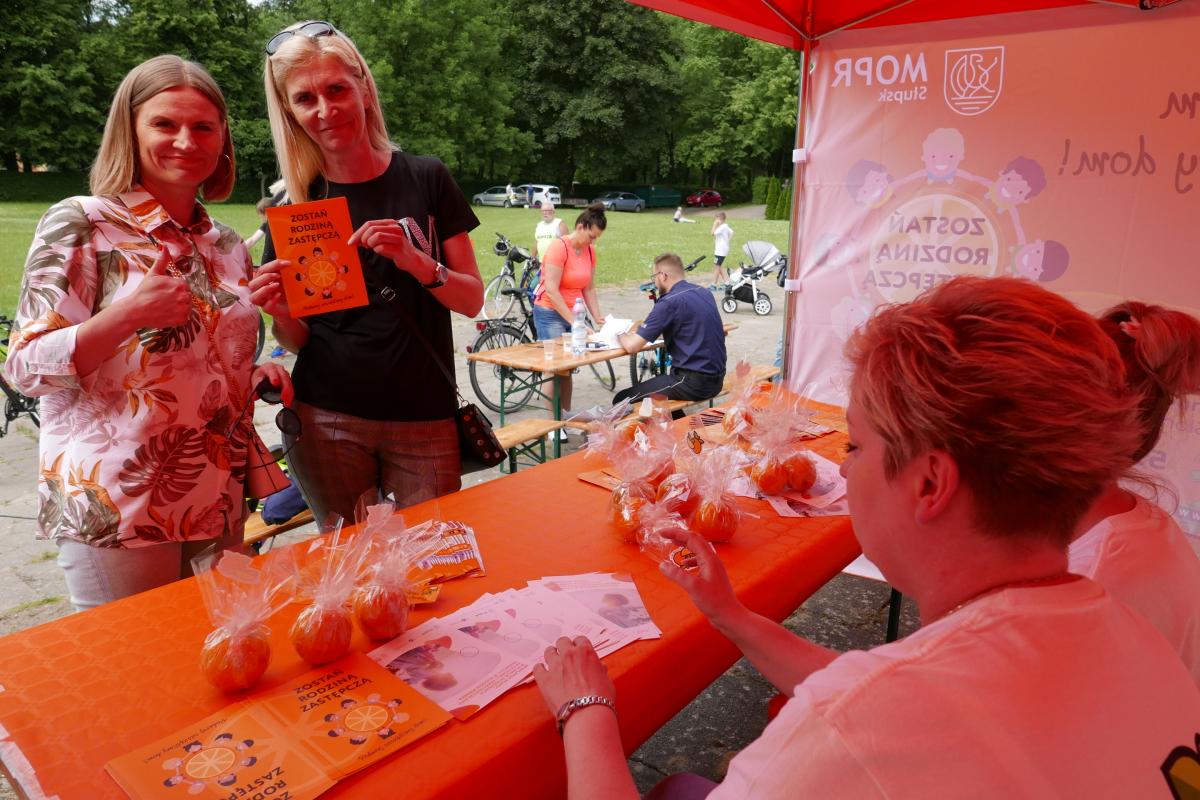 Nasi pracownicy malowali twarze dzieciom, a także stworzyli razem z nimi piękne kolorowe kamienie i breloczki. W zabawę włączyli się również rodzice, którzy przeprowadzili zajęcia z piłki nożnej. Przy okazji, promowaliśmy rodzicielstwo zastępcze. Organizatorzy mieli założone koszulki z logiem akcji „Rodzina, dzieciom”. Był wystawiony również namiot z materiałami informacyjnymi dla osób, które są zainteresowane tym tematem. Z festynu pozostaną nie tylko piękne wspomnienia. Nastoletni wychowanek pieczy zastępczej zadeklarował, że chce zostać wolontariuszem MOPR. Rodziny mogły wymieniać swoje doświadczenia i swobodnie porozmawiać ze swoimi koordynatorami z ramienia MOPR.