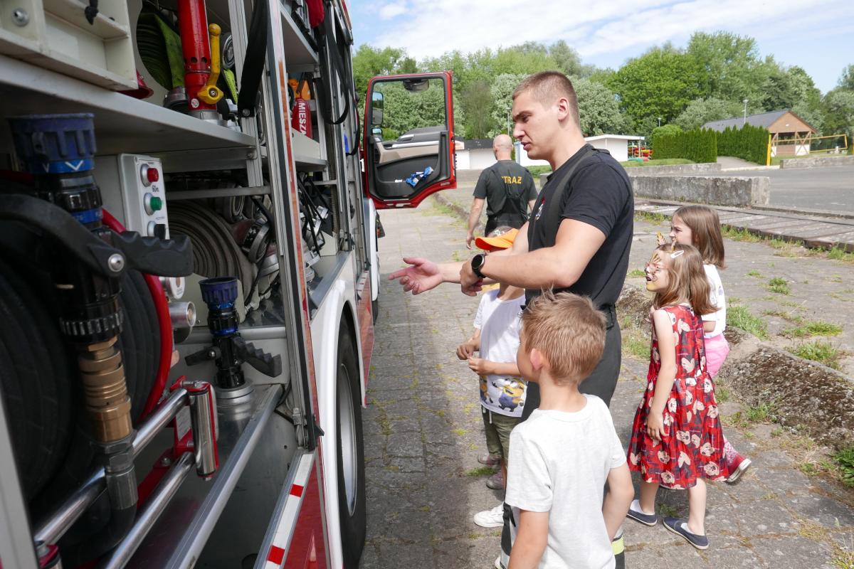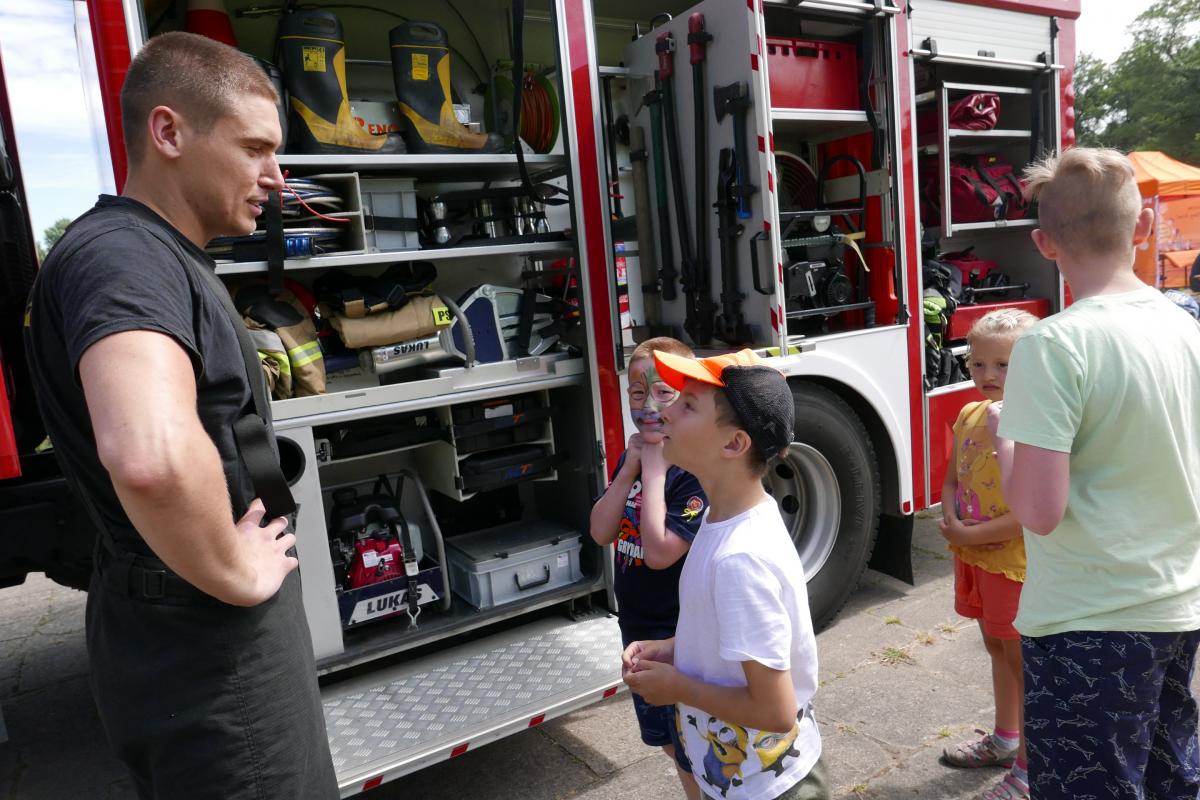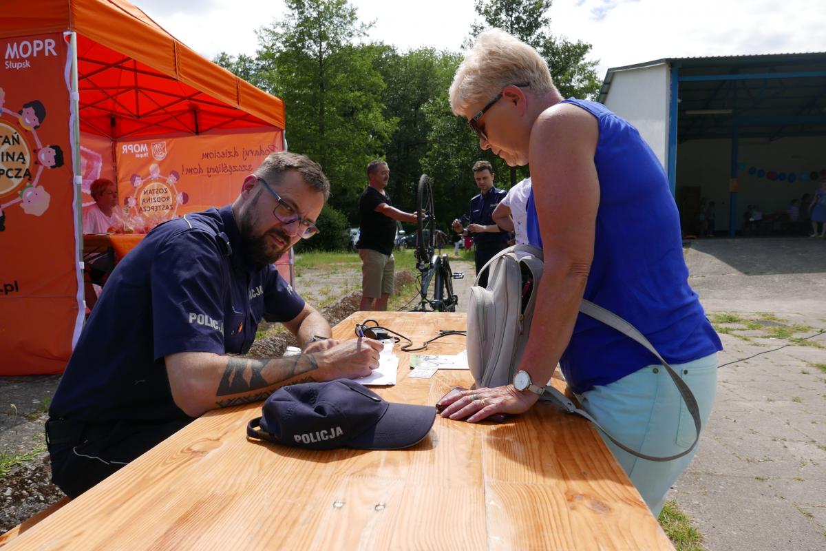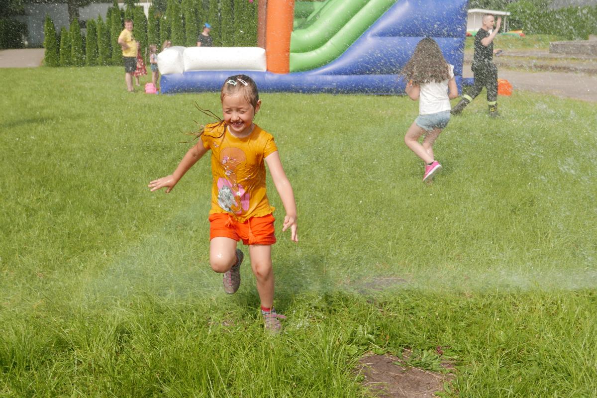 Na uczestników festynu czekało multum atrakcji, m.in. degustacja 14 ciast przygotowanych przez rodziny zastępcze w ramach konkursu z nagrodami, czy stoiska gastronomiczne naszych pracowników. Wychowawcy „Domu Sąsiedzkiego” przeprowadzili zabawy i animacje dla dzieci. Były występy artystyczne i konkurencje sportowe z nagrodami i puszczanie baniek mydlanych. Mogliśmy liczyć na niezawodne służby mundurowe. Funkcjonariusze z Komendy Miejskiej Policji w Słupsku znakowali rowery i prowadzili rozmowy z dziećmi na temat bezpiecznych wakacji. Przyjechali do nas również strażacy z Jednostki Ratowniczo – Gaśniczej nr 1 PSP w Słupsku, którzy pokazali jakim dysponują sprzętem. Dzieci chętnie wsiadały do samochodu bojowego i miały do strażaków mnóstwo pytań, na które Ci z przyjemnością odpowiadali. Potem można było liczyć z ich strony na „lanie wody”. W międzyczasie swoje warsztaty pszczelarskie przeprowadził Pan Krzysztof Startek z Pasieki „Królowa Marysieńka”.