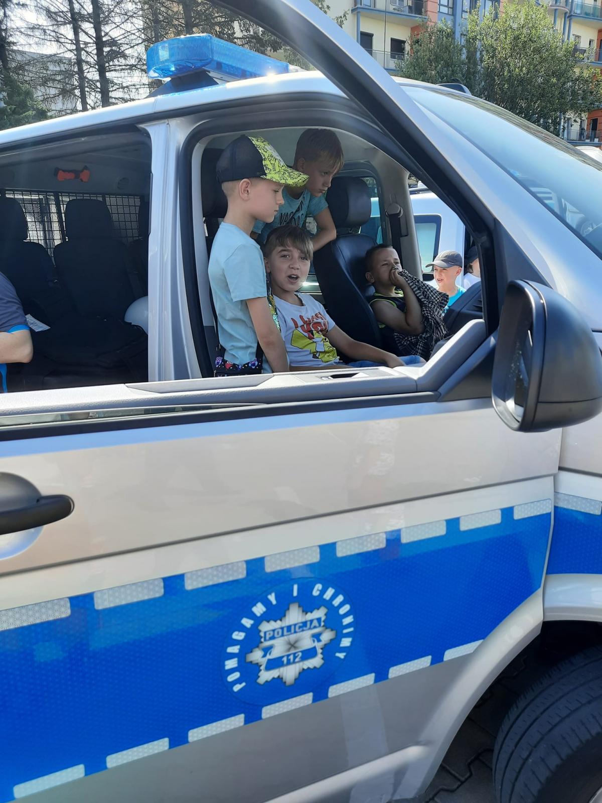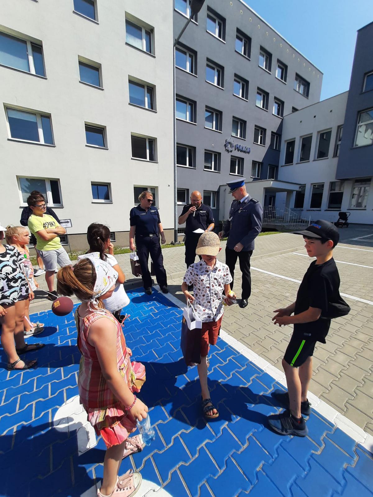 Policjanci opowiedzieli o swojej codziennej pracy. Była to również okazja do rozmów profilaktycznych dotyczących bezpiecznego wypoczynku w związku z akcją "Kręci mnie bezpieczeństwo nad wodą".