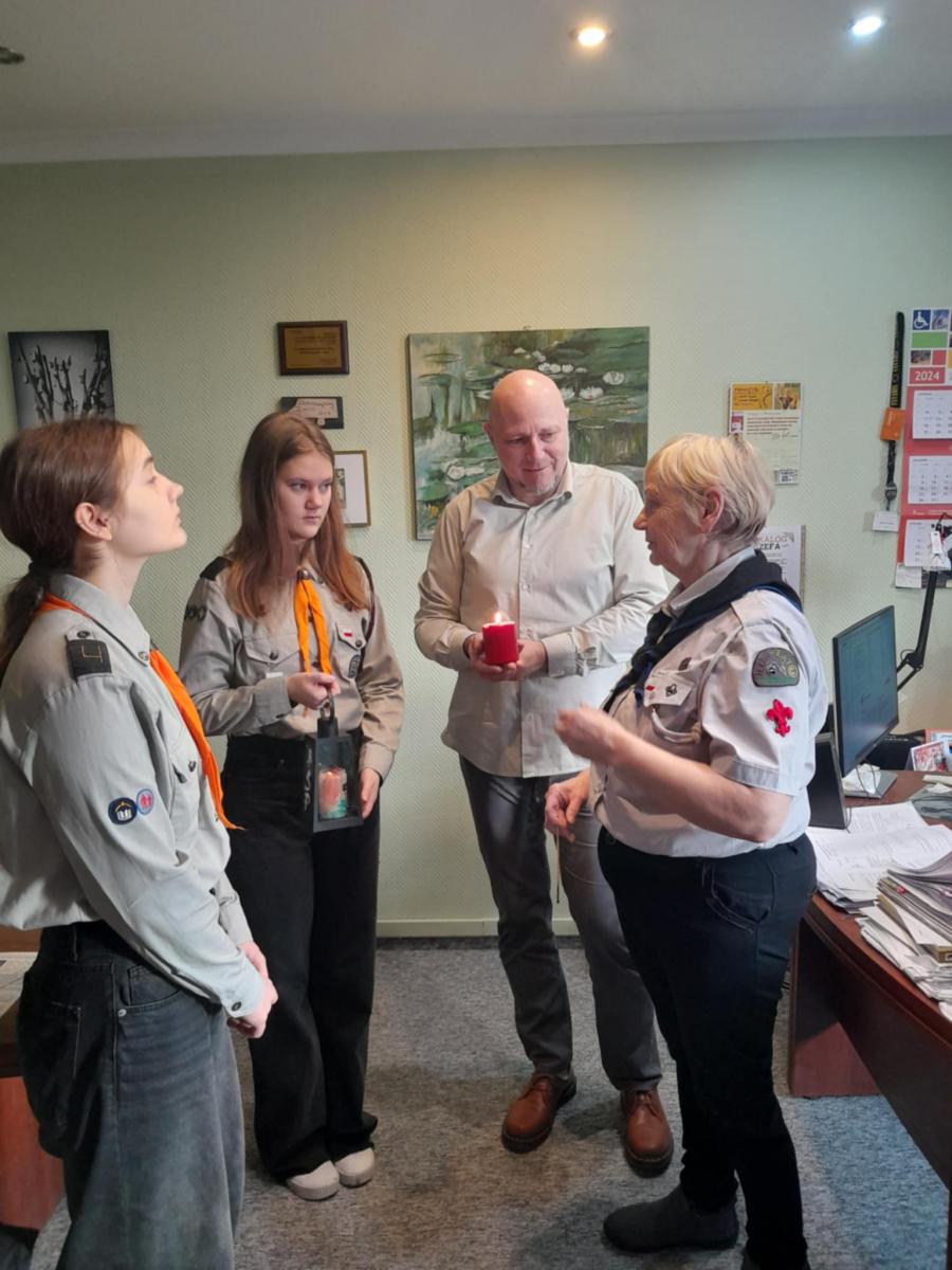 Przekazali na ręce Pana Dyrektora Marcina Tredera Betlejemskie Światło Pokoju.