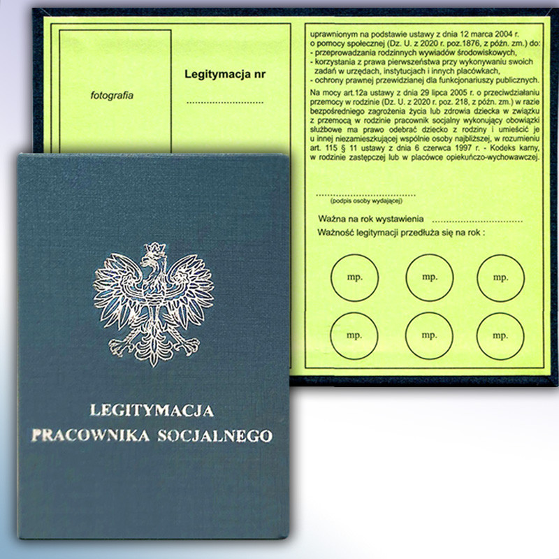 Wiarygodna legitymacja posiada dane pracownika, zdjęcie z pieczątką MOPR, pieczątkę Dyrektora MOPR, ważność jest przedłużana co rok.