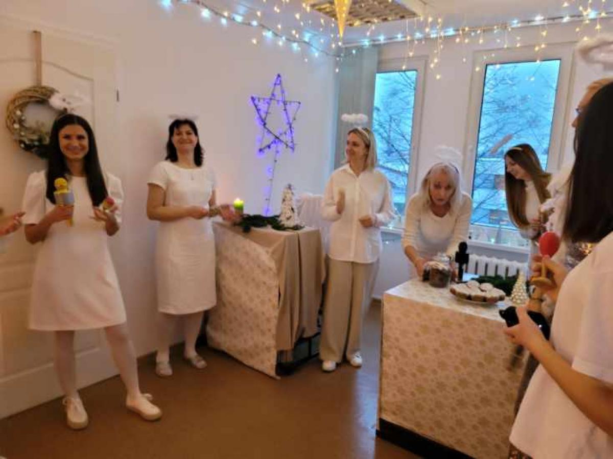 I miejsce otrzymał Zespół ds. asysty rodziny. Panie asystentki, przebrane za anioły, zaangażowały się nie tylko w przepiękny wystrój pokoju dbając o najmniejszy szczegół, przygotowały domowe wypieki, ale zaprezentowały też występ - kolędę.
