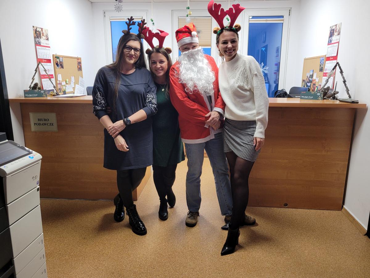 III miejsce otrzymały nasze koleżanki z Sekretariatu MOPR: Sylwia Wolska i Sara Cieślicka w doborowej asyście naszej Dyrekcji - Katarzyny Filipiak i Marcina Tredera. Komisja doceniła zaangażowanie, wystrój a także kreatywne przebrania i kolędy.