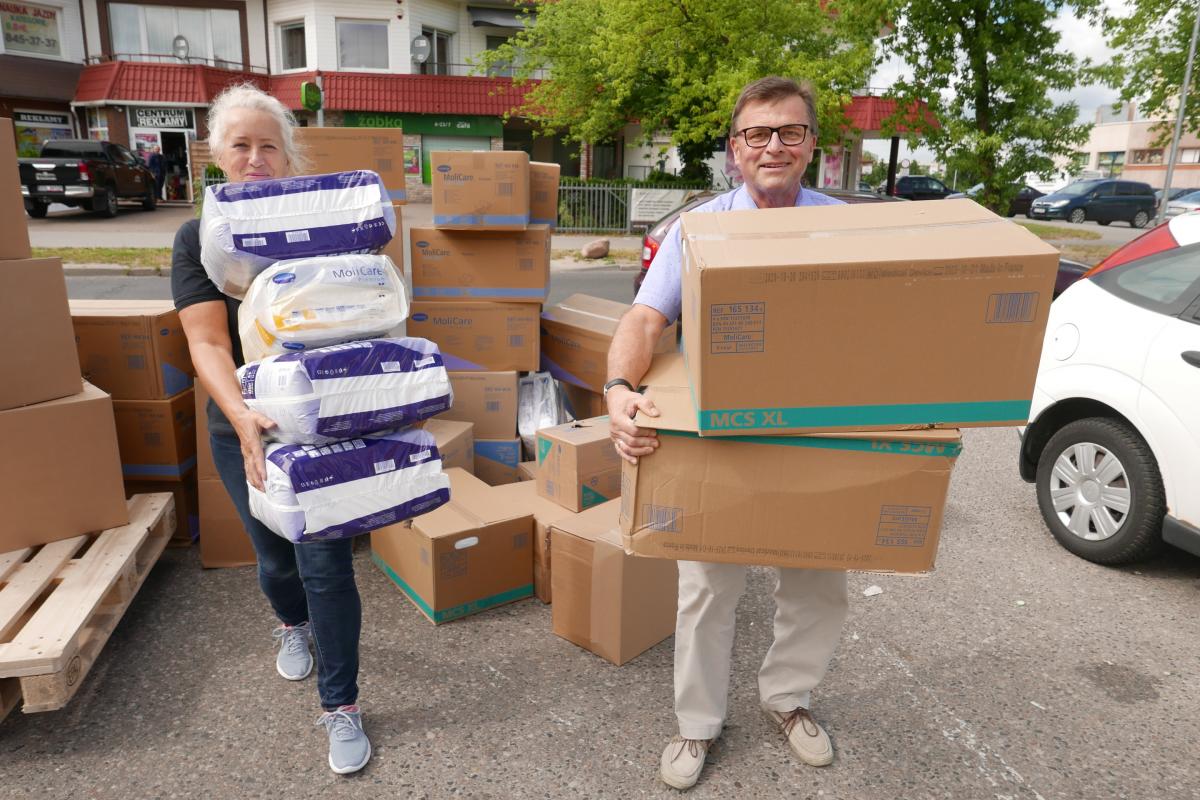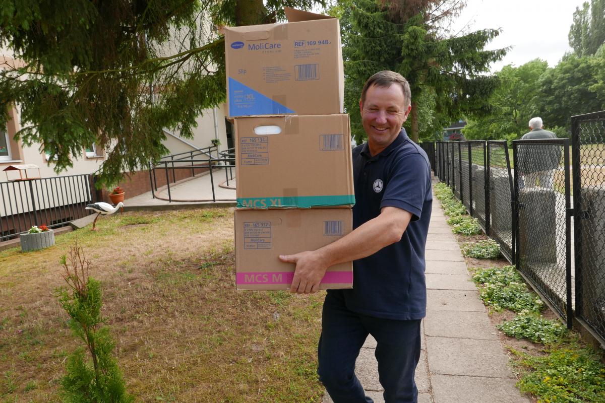 Pomorskie Towarzystwo Zakonu Joannitów przekazało kolejne dary. Otrzymaliśmy pięć palet materiałów medycznych takich jak: pampersy, podkłady jednorazowe i rękawiczki firmy Hartmann itp.