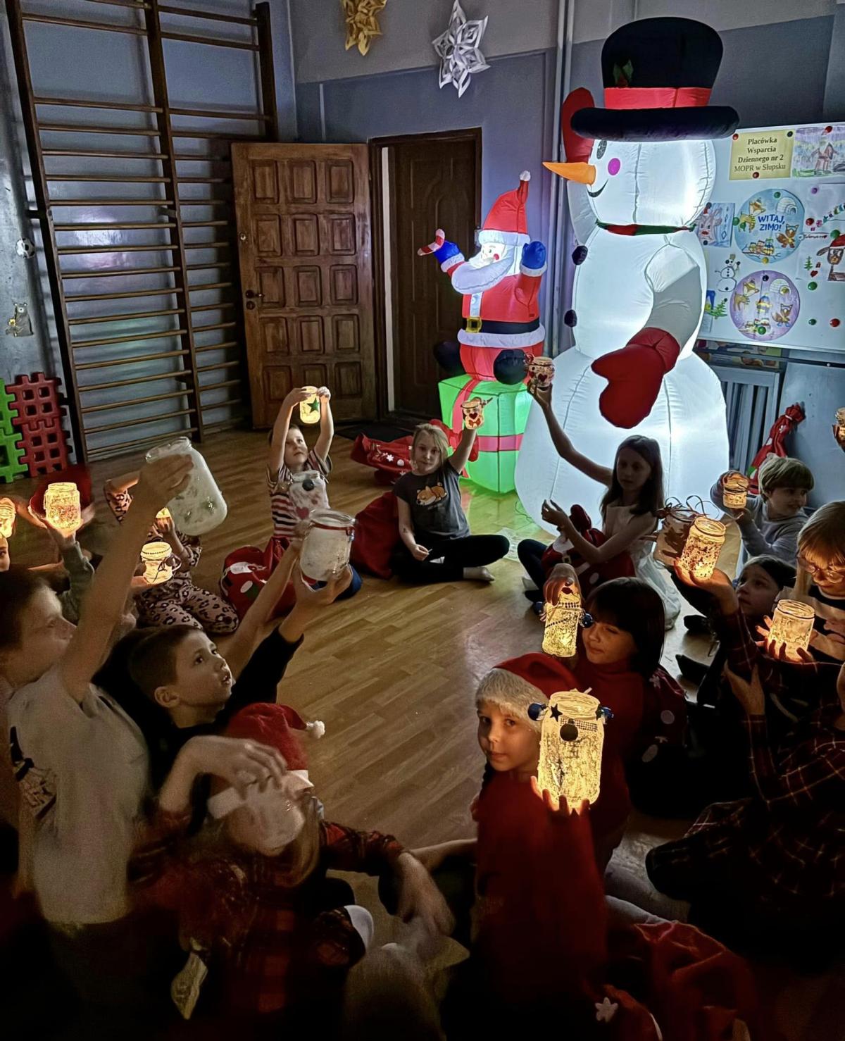Zabawę rozpoczęliśmy od zabaw i konkursów przy muzyce, które przeprowadziła wspaniała Pani Kasia Szadkowska Pompalina - animacje i wariacje.Każde dziecko otrzymało od Św. Mikołaja prezent. Po ich rozpakowaniu przystąpiliśmy do wykonania lampionów. Nasze spotkanie zakończyliśmy zapaleniem świeczek w lampionach oraz wspólnym zdjęciem .