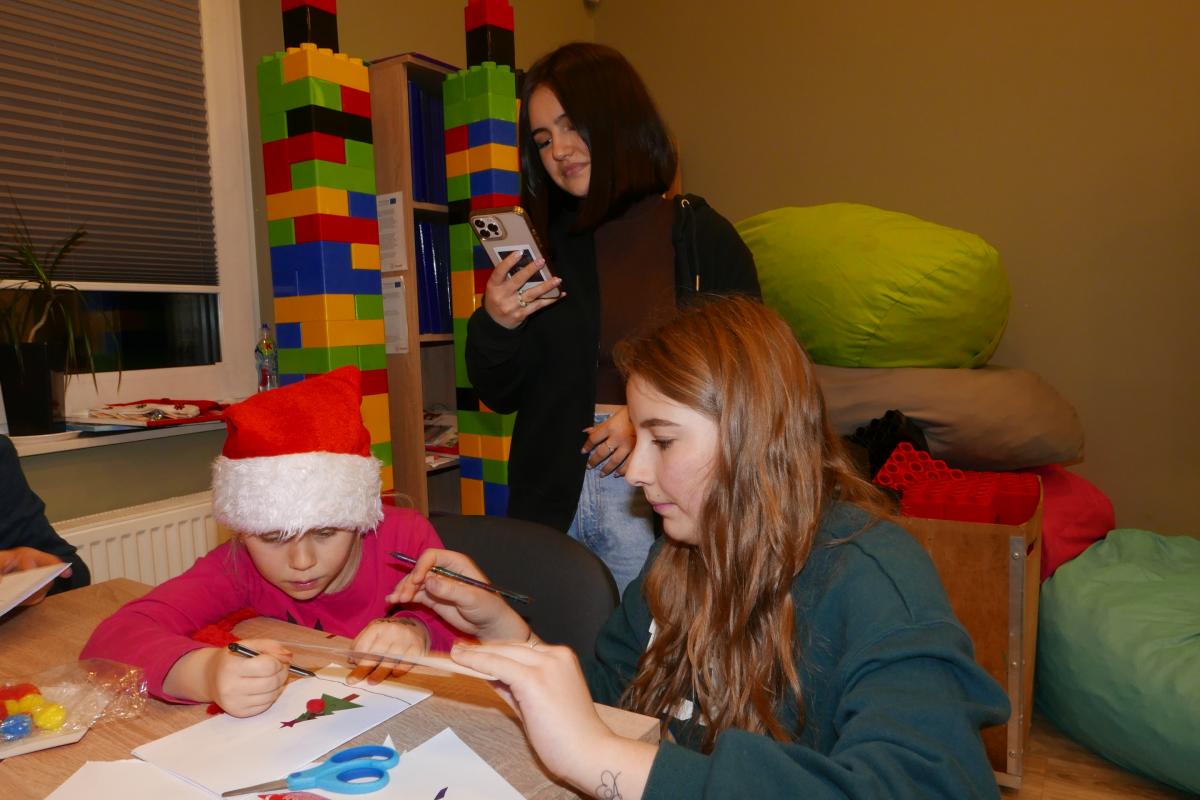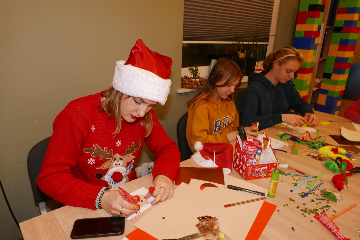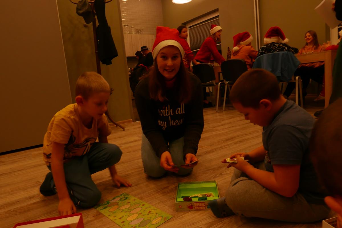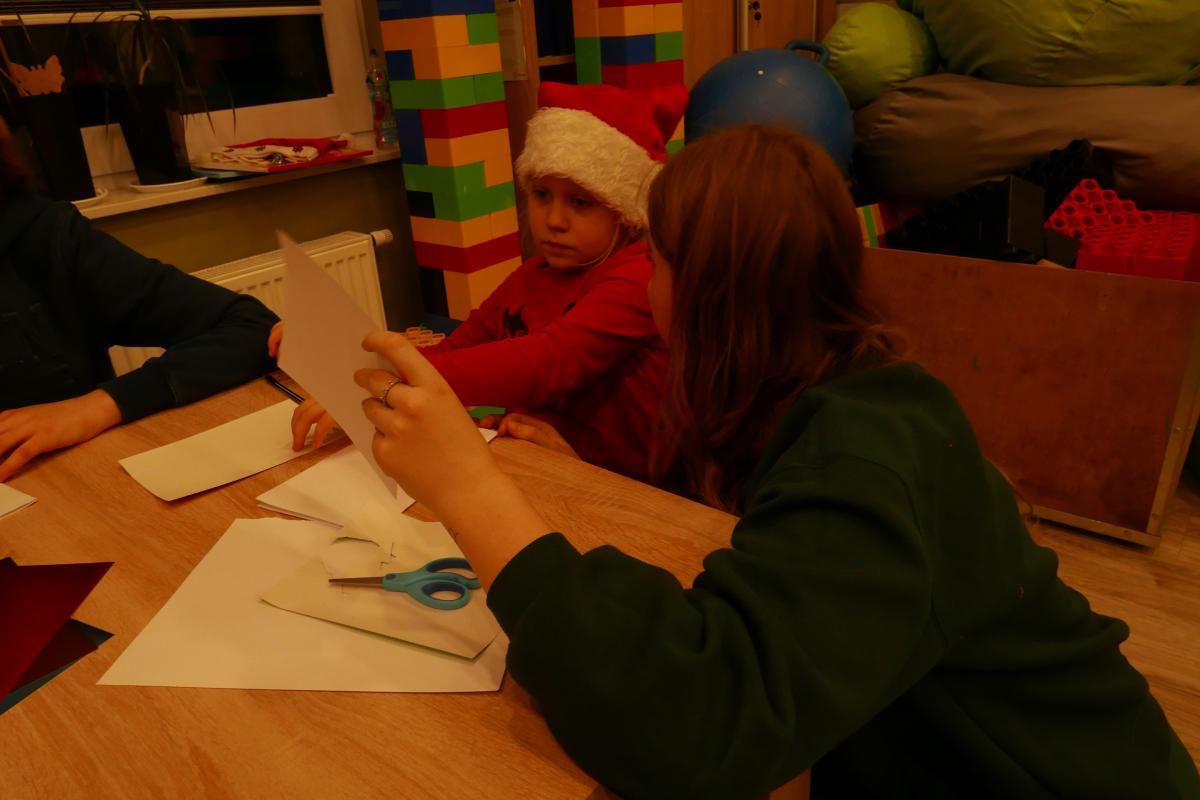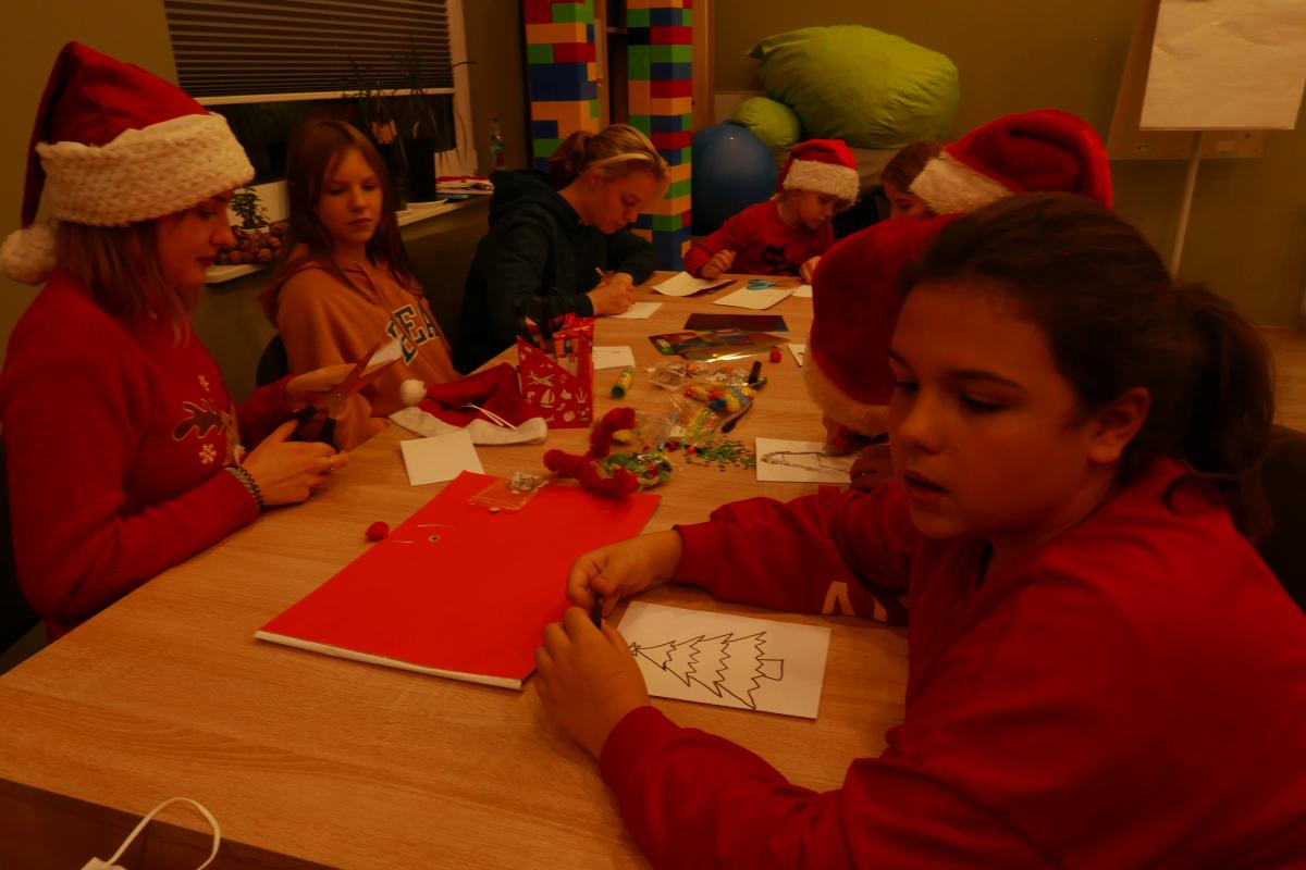 Kolejne atrakcje „mikołajkowe” zapewnili dzieciom wychowawcy „Domu Sąsiedzkiego” i wolontariusze z II Liceum Ogólnokształcącego im. A. Mickiewicza w Słupsku. Odbyły się warsztaty z robienia kartek świątecznych. Można też było zagrać w gry planszowe i nauczyć się układu tanecznego. Animacje cieszyły się ogromnym powodzeniem. Obecność uczniów jest częścią innego projektu, o którym napiszemy już niebawem.