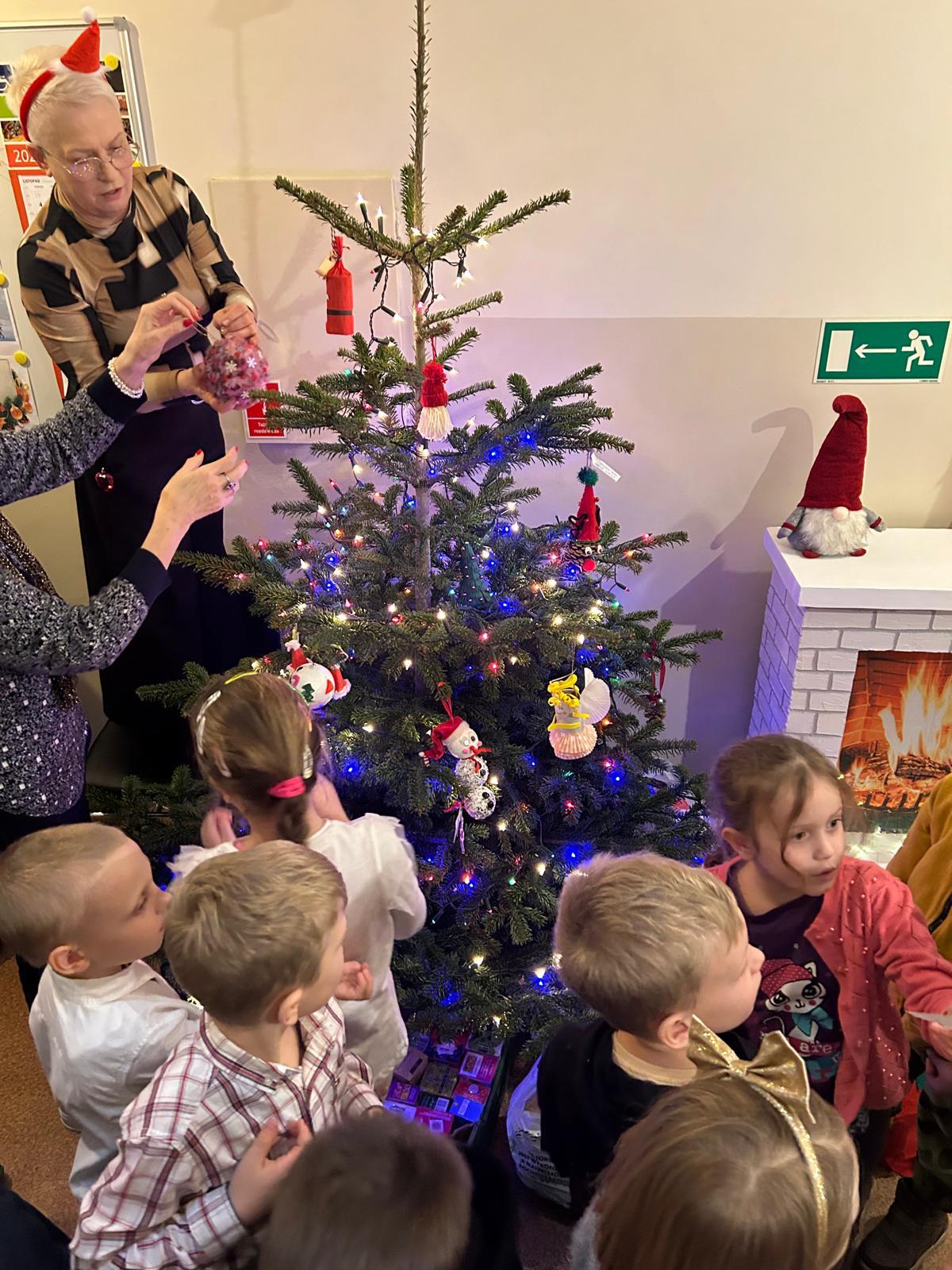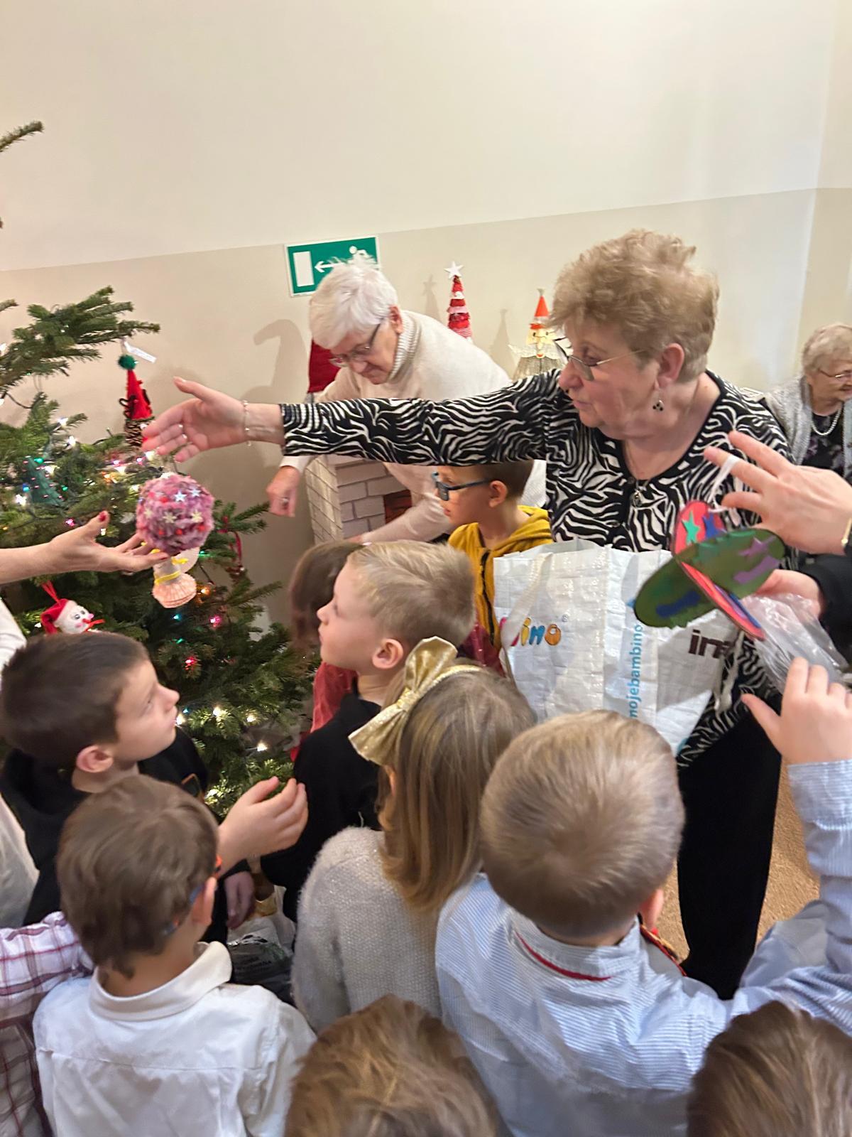 Dzieci przygotowały dla naszych podopiecznych wspaniały koncert kolęd i piosenek świątecznych, który był wstępem do wspólnego ubierania choinki na holu głównym naszego Domu. Dla seniorów był to czas wzruszeń i radości, a zawieszanie, własnoręcznie wykonanych przez przedszkolaki ozdób dodało domowego klimatu. Otrzymaliśmy również mnóstwo prezentów, które były wynikiem zbiórki zainicjowanej przez Przedszkole Miejskie nr 15 "Kolorowy Wiatraczek" w Słupsku a darczyńcami byli rodzice podopiecznych przedszkola.