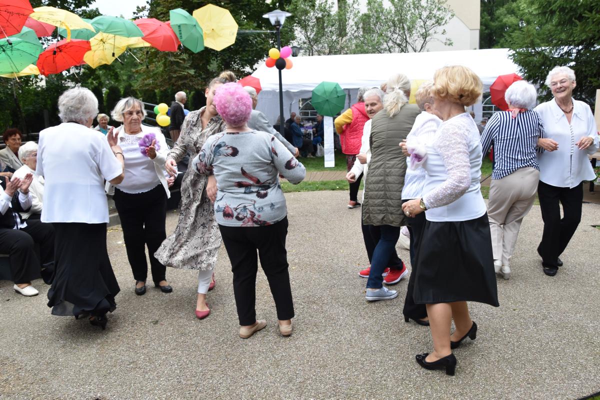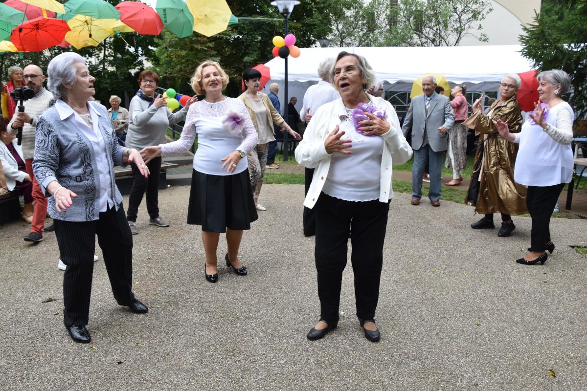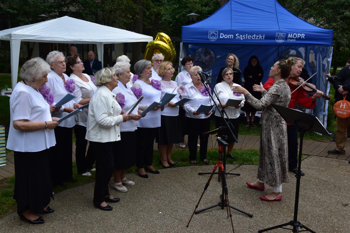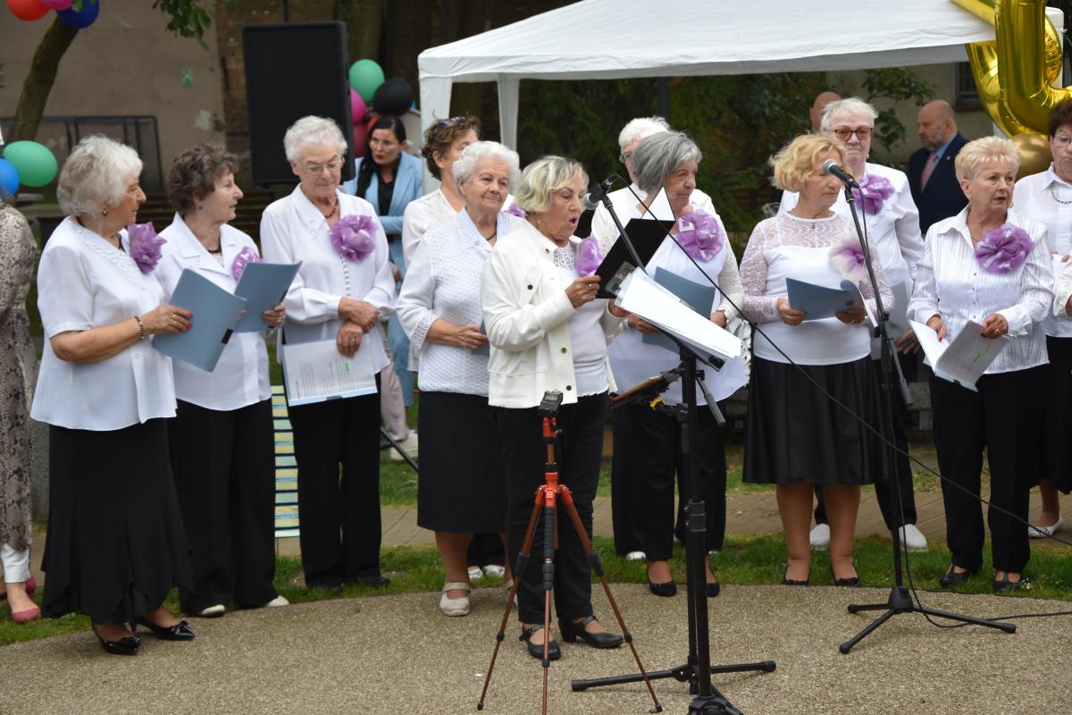 Ważnym elementem uroczystości były występy artystyczne zespołu wokalnego „Wrzosy” działającego przy Dziennym Domu, któremu akompaniował P. Tadeusz Picz. Swoją „cegiełkę” dołożyli również wychowawcy i podopieczni Placówki Wsparcia Dziennego „Dom Sąsiedzki”, których program artystyczny uświetnił tę uroczystość prowadzoną przez P. Aleksandrę Cybulę. Oprócz prowadzenia wydarzenia, swoim śpiewem dołączyła się do życzeń jubileuszowych.