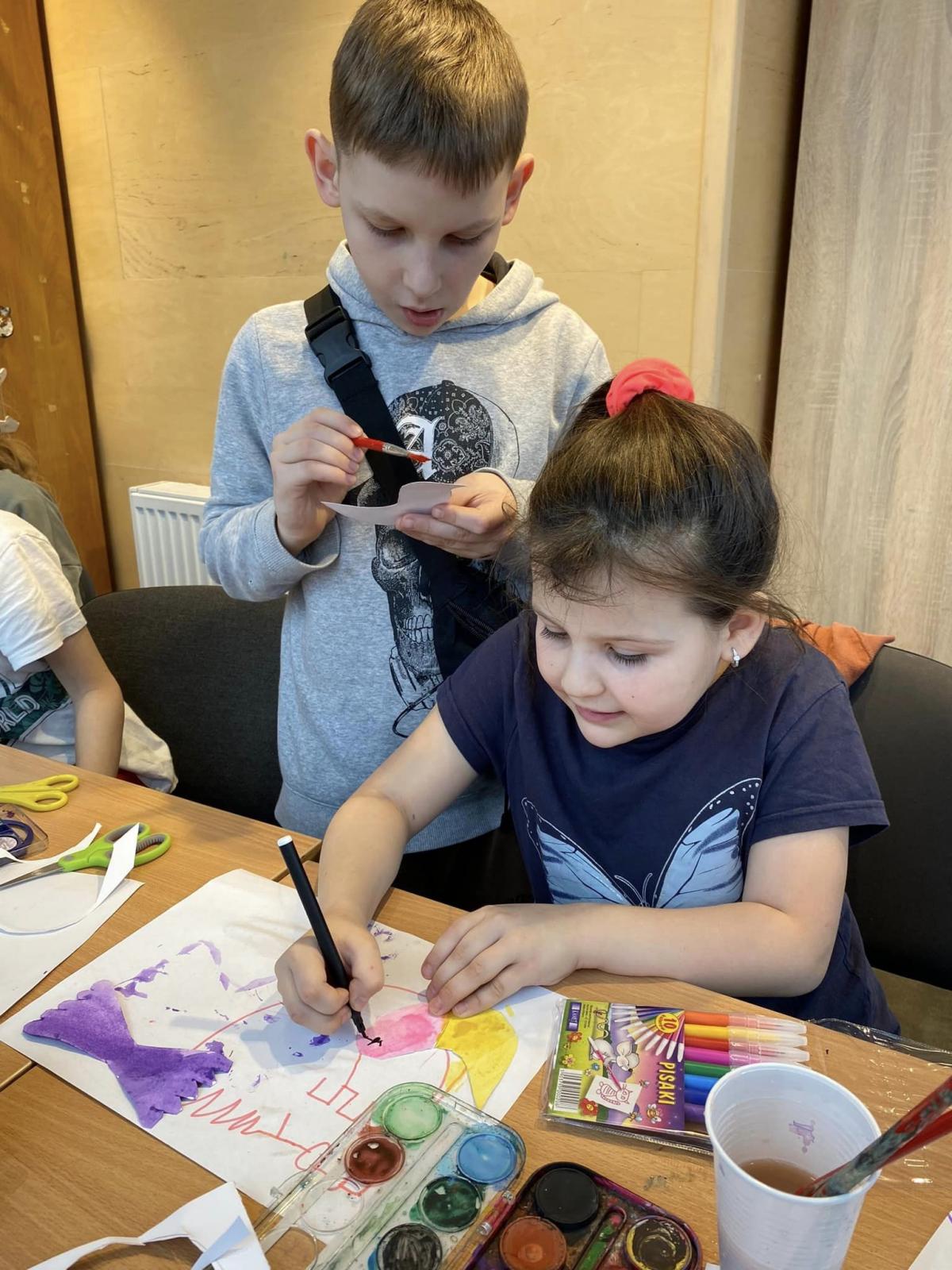 Dzieci z Placówki nr 4 przy ul. Raszyńskiej tworzyły kwiaty z bibuły i przebrania z filmu „Coco”.