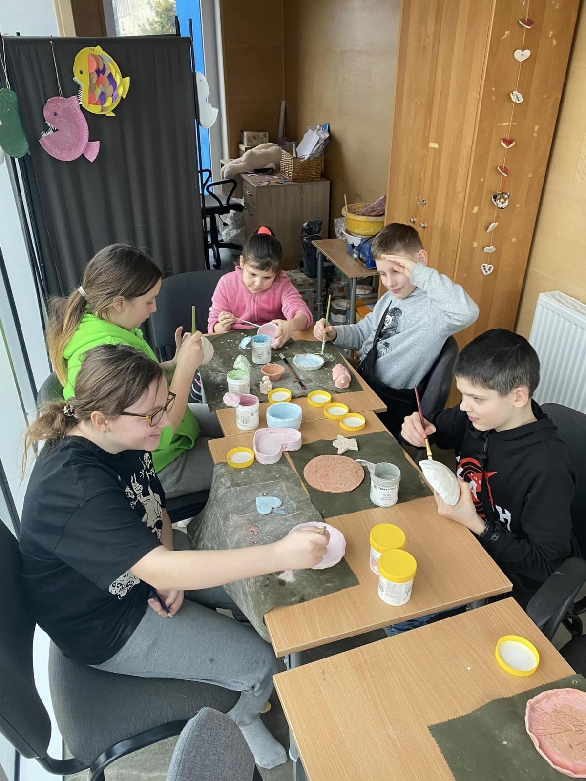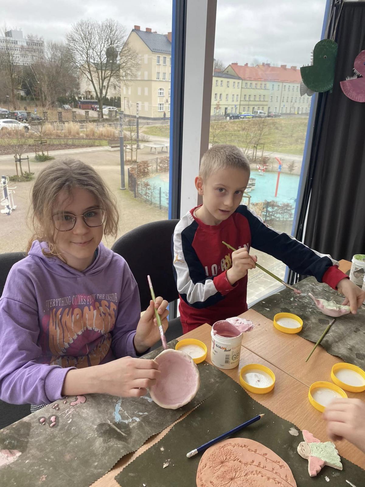Dzieci z "Domu Sąsiedzkiego" na warsztatach plastycznych wyczarowały na zajęciach piękne, kolorowe ptaki, naczynia i figurki, świece z użyciem suszonych pomarańczy, muszelek i kamyczków. Wybrały się również na słupskie lodowisko.