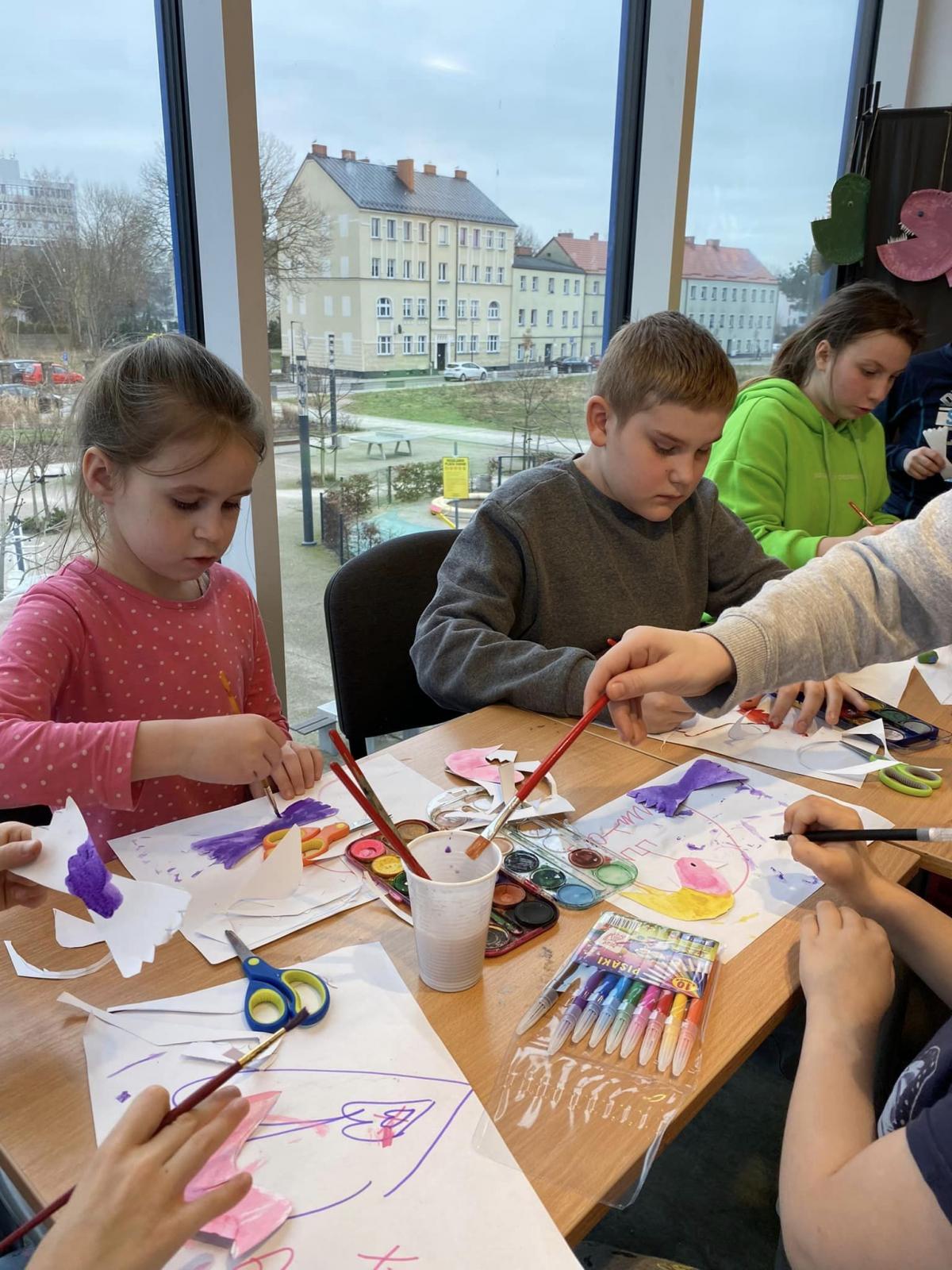 Dzieci z Placówki Wsparcia Dziennego nr 2 przy ul. Sienkiewicza odwiedziły Filię nr 7 Miejskiej Biblioteki Publicznej im. Mari Dąbrowskiej – wykonały domki dla ptaków, a po zajęciach udały się na lodowisko i pyszne gofry. Wzięły również udział w pogadance edukacyjno-profilaktycznej w Powiatowej Stacji Sanitarno-Epidemiologicznej, na której poruszano tematy zdrowego odżywiania, bezpiecznego spędzania ferii zimowych. Nauczyły się robić naleśniki i przekąski z ciasta francuskiego.