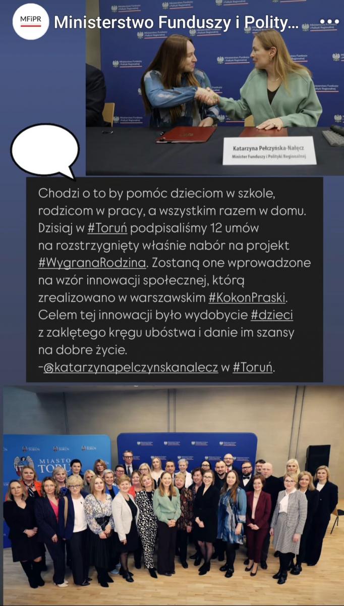 Dzięki umowie, którą podpisała Pani Minister Katarzyna Pełczyńska - Nałęcz oraz Marcin Treder, Dyrektor naszego Ośrodka, słupskie rodziny uzyskają szanse na kompleksowe wsparcie.