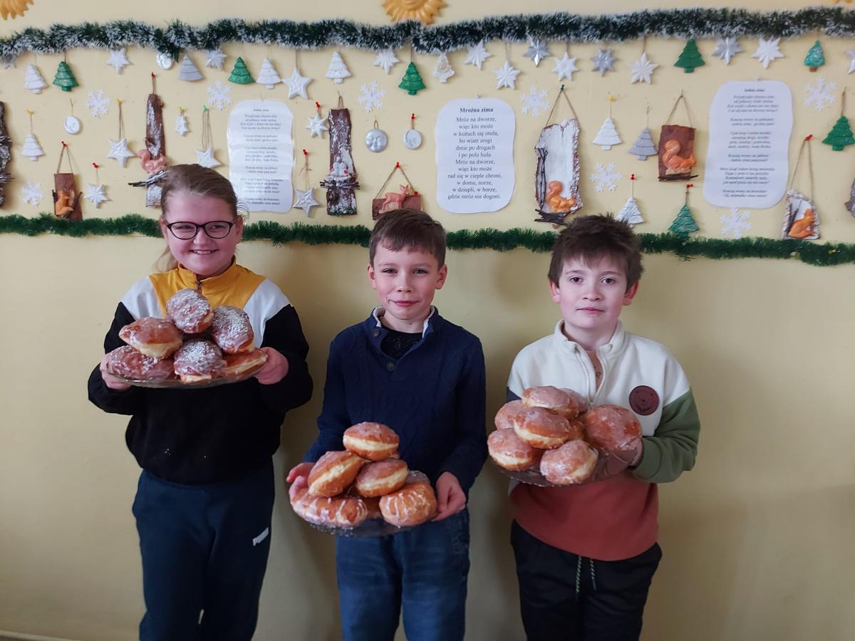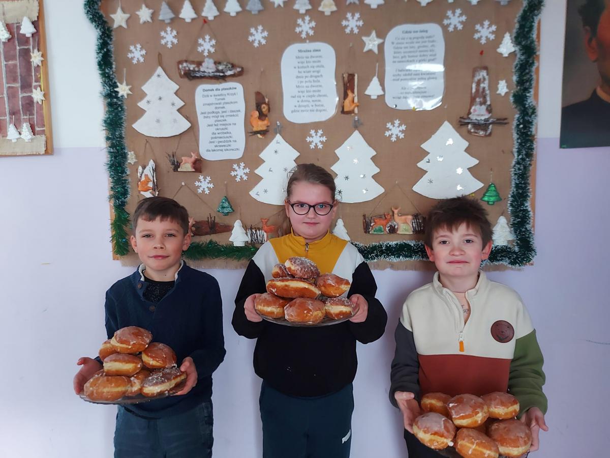 Dzieci zgodnie z tradycją świętowały również Tłusty Czwartek, delektując się pysznymi pączkami.