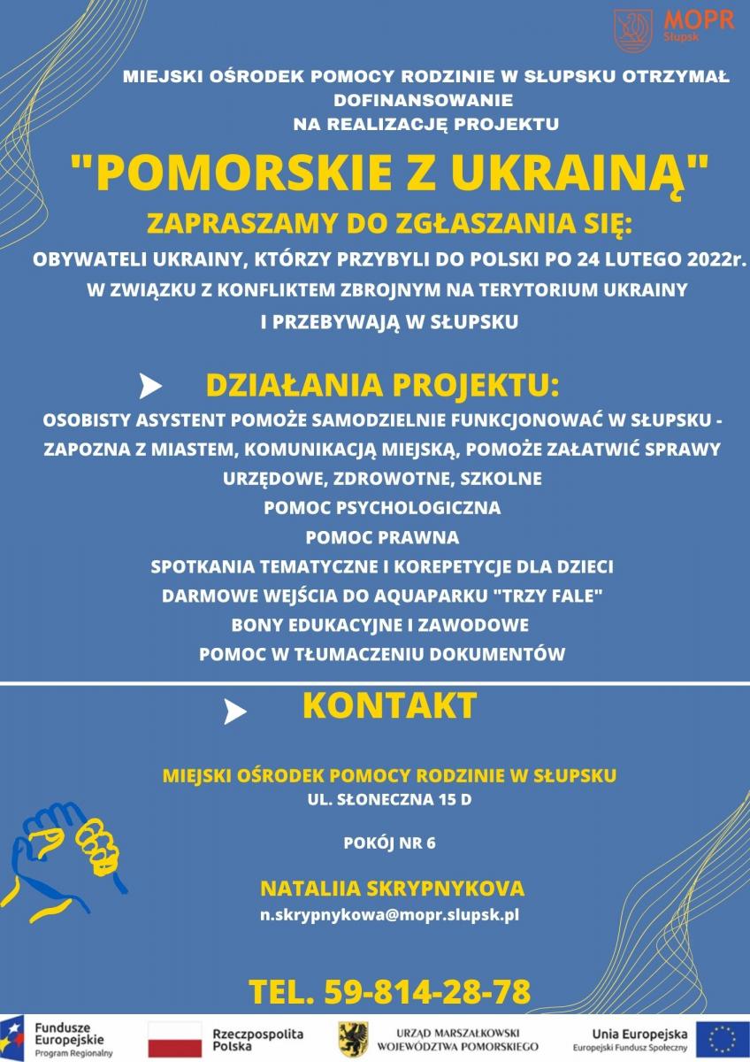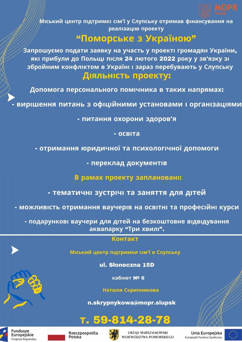 Розпочинаємо набір на новий грантовий проект "Поморське з Україною” в рамках Заходу 14.1 Інтеграція іммігрантів Регіональної операційної програми для Поморського воєводства на 2014-2020 роки.
