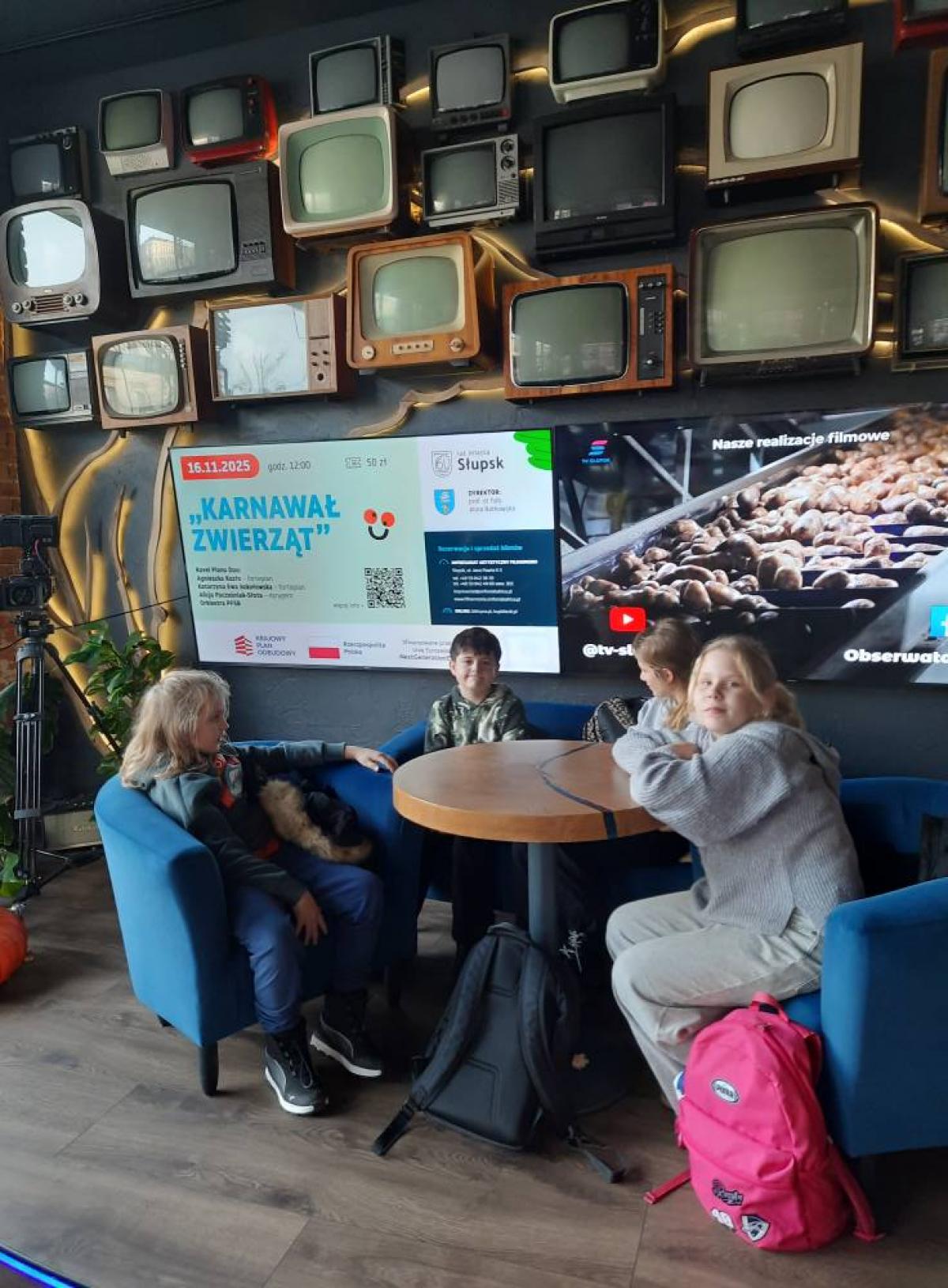W dniu 13 listopada 2025 r. dzieci uczęszczające do Placówki Wsparcia Dziennego nr 4 przy ul. Raszyńskiej uczestniczyły w wyjściu do Kawiarni Telewizyjnej „Pegaz”, w której mieści się siedziba lokalnej telewizji – TV Słupsk. Podczas wizyty miały możliwość zapoznania się z zapleczem pracy redakcji oraz porozmawiania z dziennikarzami stacji.