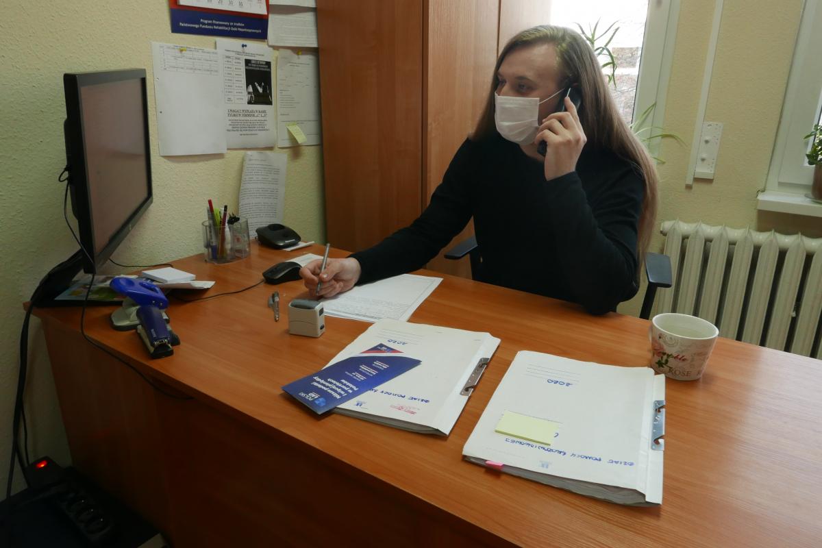 W tym samym czasie, każdy z zespołów pracy socjalnej wyznacza jedną osobę dyżurującą w naszej siedzibie przy ul. Słonecznej 15D, która odbiera telefony od petentów. Rozmawia z nimi, spokojnie tłumacząc jakie wsparcie jest możliwe i na jakich warunkach może być udzielone. Podczas dyżuru, pracownik wydaje decyzje administracyjne i przyjmuje klientów, którzy przyjdą do Ośrodka.