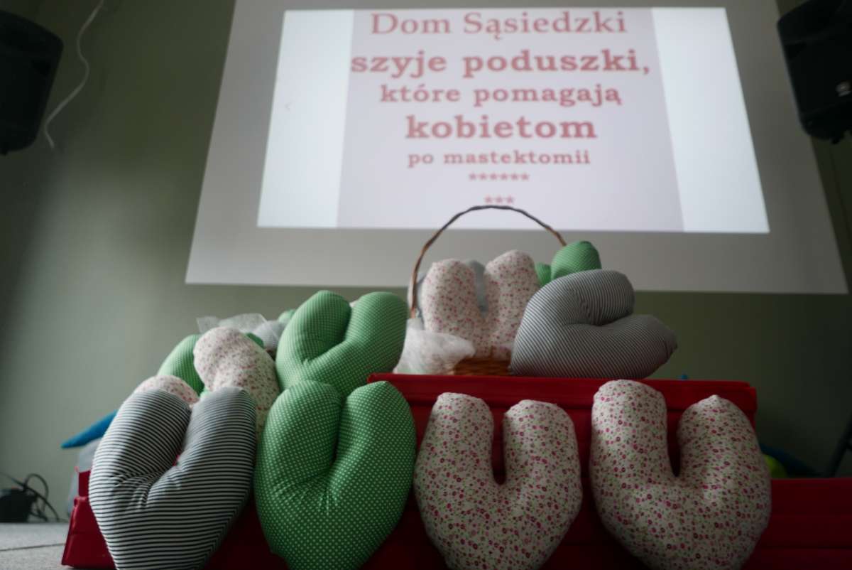 Dodajmy, że projekt polega na szyciu poduszek w kształcie serc, które wspierają rehabilitację pacjentów po zabiegu mastektomii, czyli usunięciu piersi. Poduszka może łagodzić ból. Chroni przed przypadkowym urazem, łagodzi obrzęk i zmniejsza napięcie barku. Akcja odbywa się w ramach zajęć stałych prowadzonych przez wychowawców. Przypomnijmy, że we wtorki i czwartki odbywają się „Herbatki dla Seniora”. Piątki zaś stoją pod znakiem warsztatów kulinarnych. Poza tym odbywają się inne ciekawe zajęcia, na które serdecznie zachęcamy.