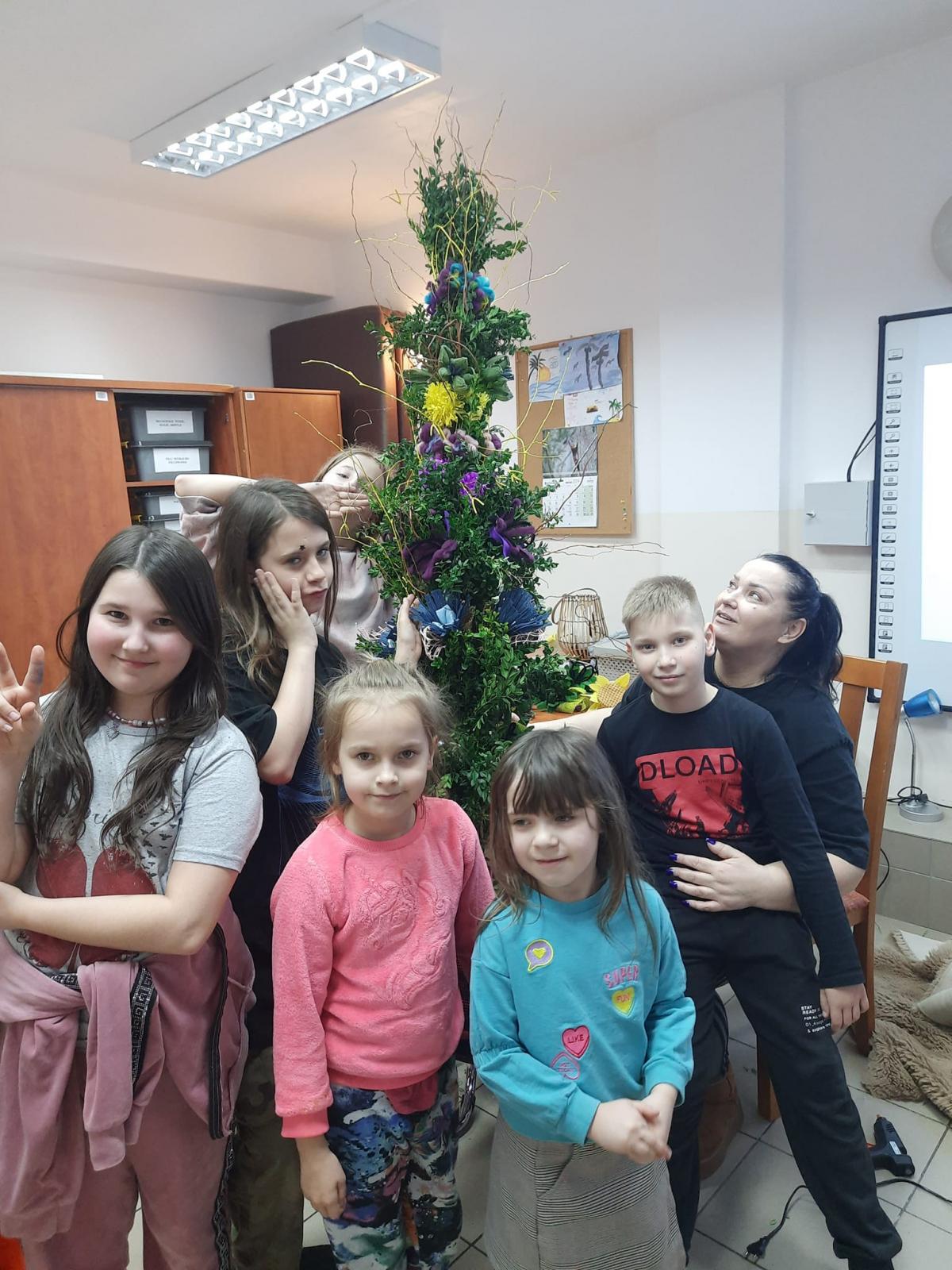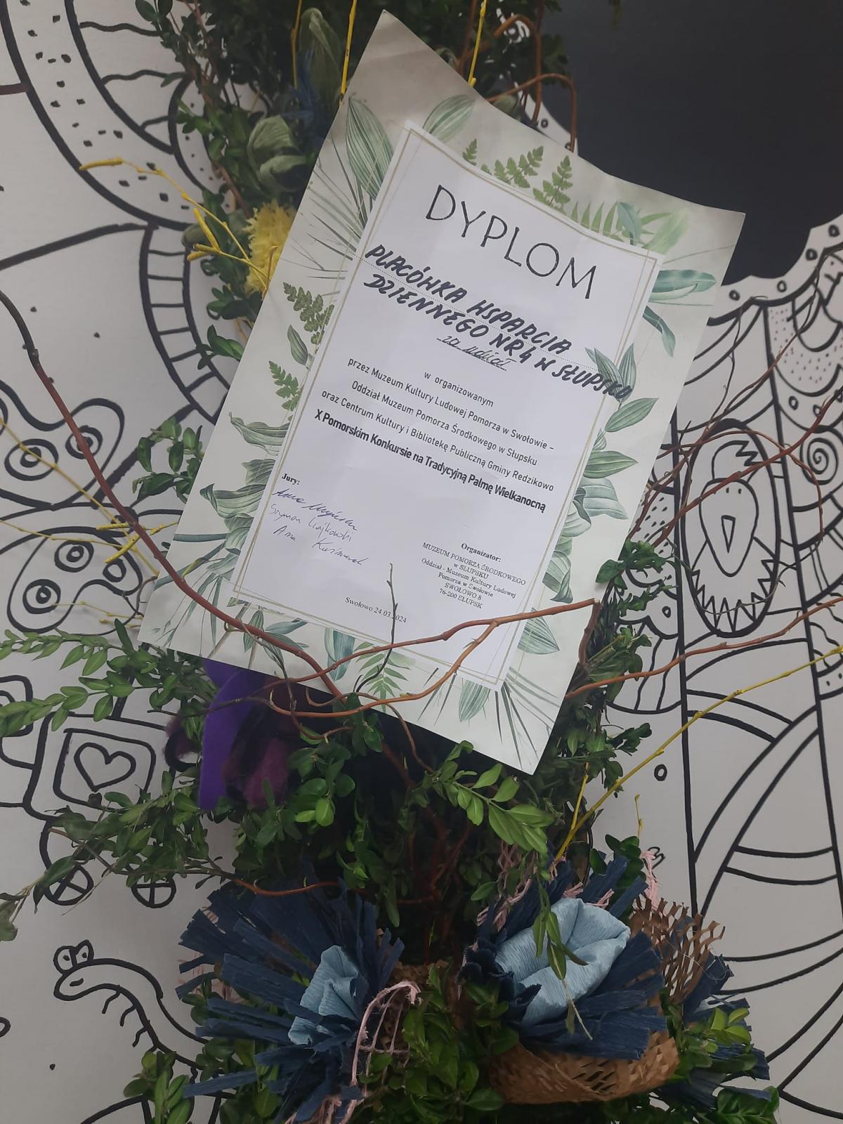 Dzieci z Placówki nr 4 przygotowały również palmę wielkanocną. Wykonały do niej kwiaty z krepiny, bibuły oraz filcu. Dołączono bukszpan, gałęzie brzozy. Metrowa palma wystartowała w X Pomorskim Konkursie na Tradycyjną Palmę Wielkanocną w Swołowie. Dzieci zdobyły dyplom uczestnictwa. Gratulujemy!