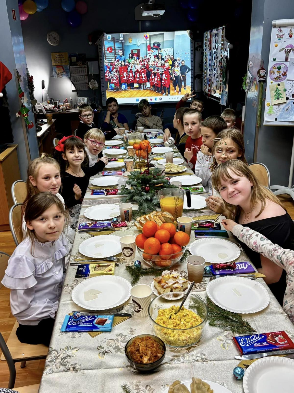 Wspólne spędzanie czasu przy wigilijnym stole w Placówce Wsparcia Dziennego nr 2 przy ul. H. Sienkiewicza rozpoczęliśmy od powitania Pana Marcina Tredera, Dyrektora naszego Ośrodka oraz Pani Maliny Iwaszko, Kierownika Placówek Wsparcia Dziennego. Po powitaniu przybyłych osób dzieliliśmy się opłatkiem. Później przyszedł czas na spróbowanie pysznych tradycyjnych, świątecznych dań i występy wokalne naszych wychowanków. Mieli oni okazję, podczas występów, pochwalić się swoimi talentami.