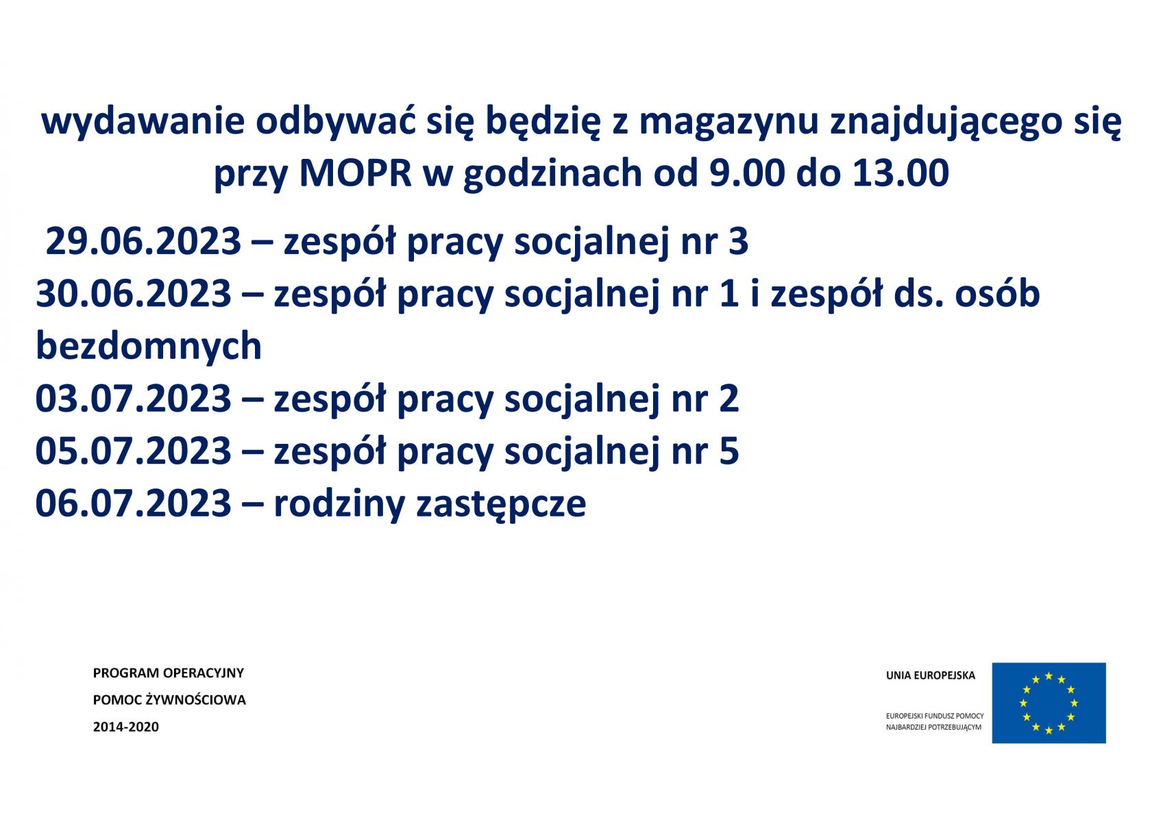 Terminy wydawania żywności - czerwiec i lipiec