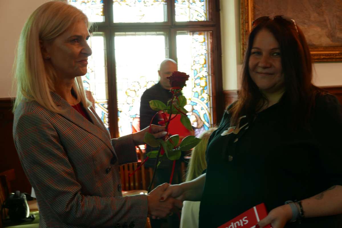 W dniu dzisiejszym tj. 31.05.2021r. w Sali Konferencyjnej słupskiego Ratusza Pani Prezydentka razem ze swoją Zastępczynią Martą Makuch i Beatą Pawlicką – Dyrektorką Wydziału Zdrowia i Spraw Społecznych wręczyły upominki i kwiaty, ale przede wszystkim przekazały ciepłe słowa pod adresem reprezentantów rodzin zastępczych, których działania koordynuje Miejski Ośrodek Pomocy Rodzinie w Słupsku.