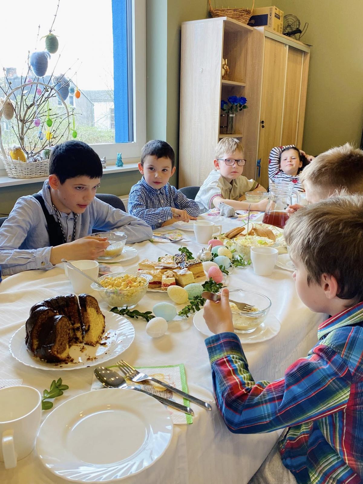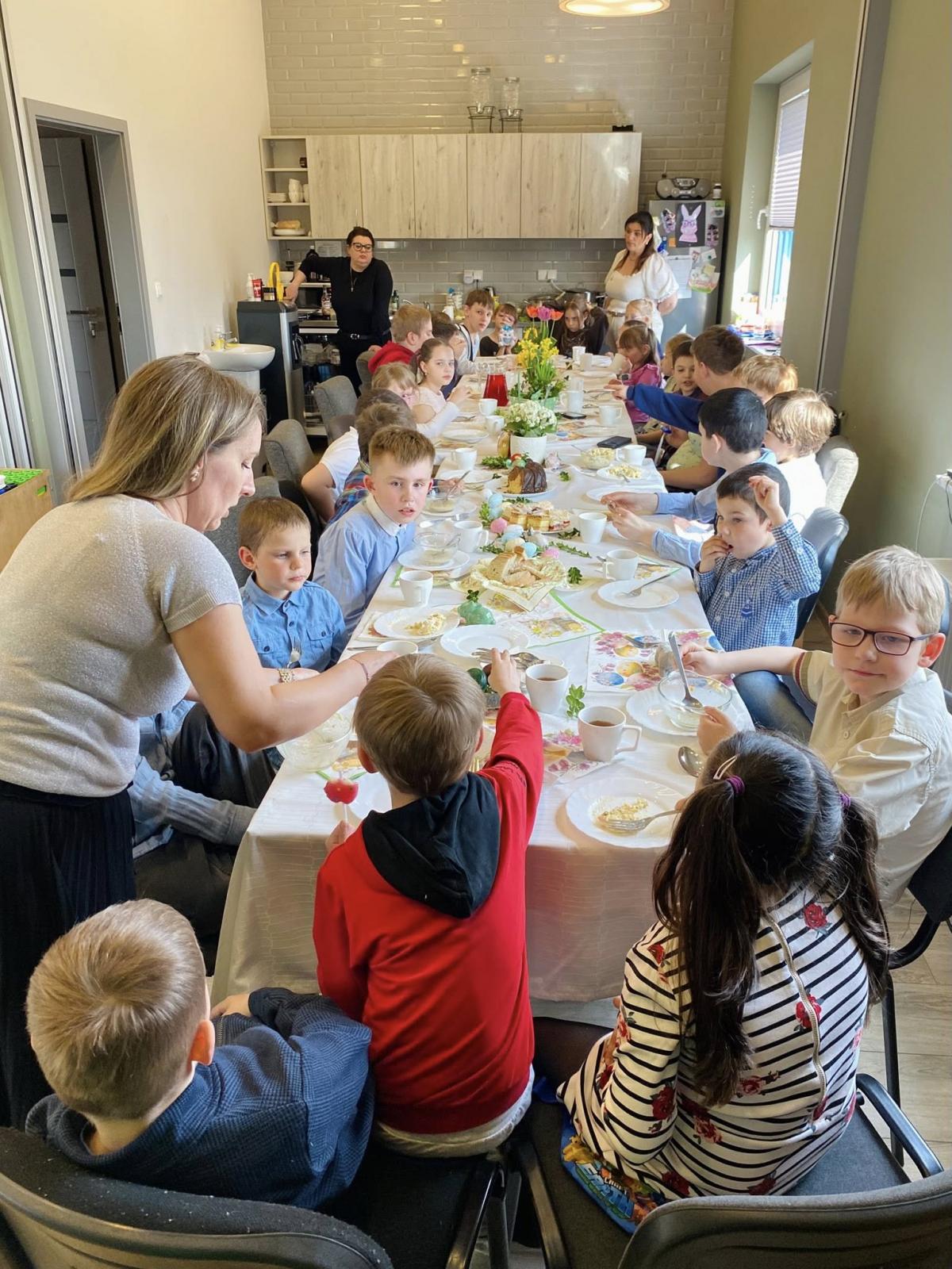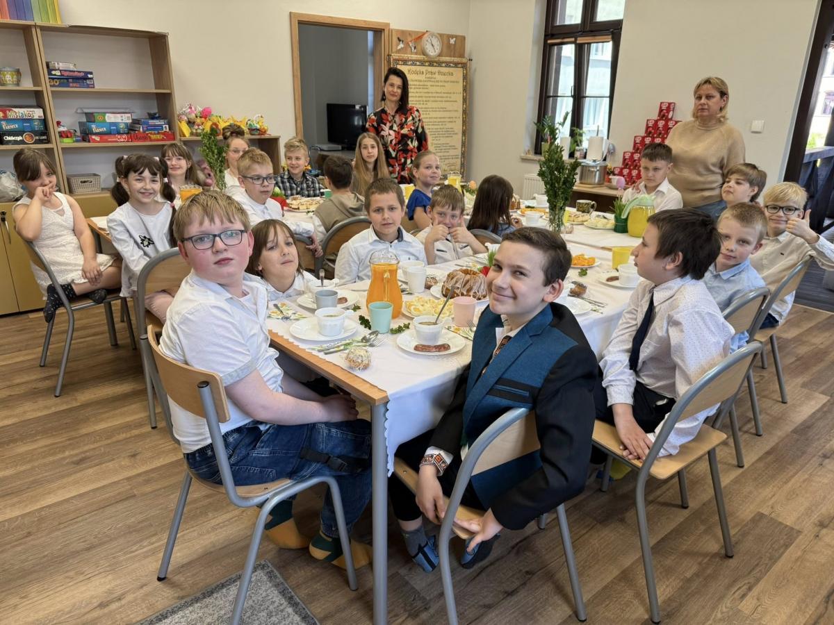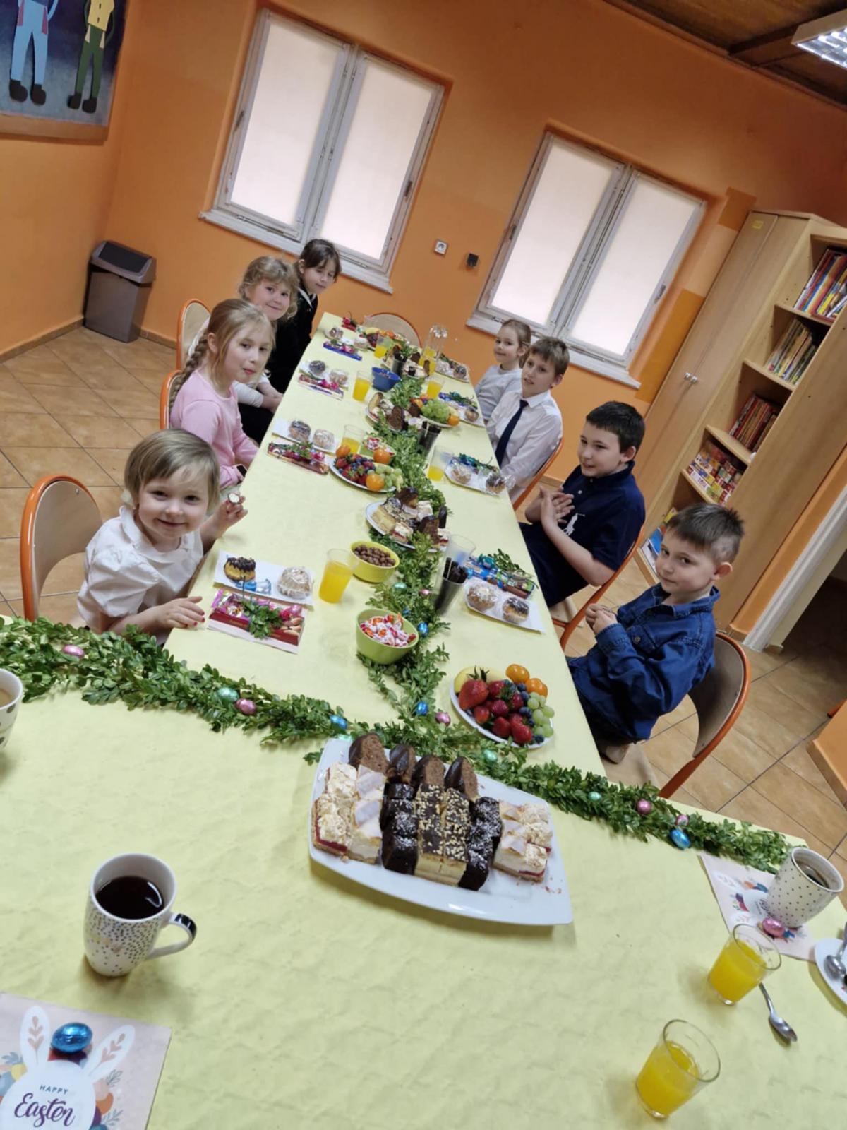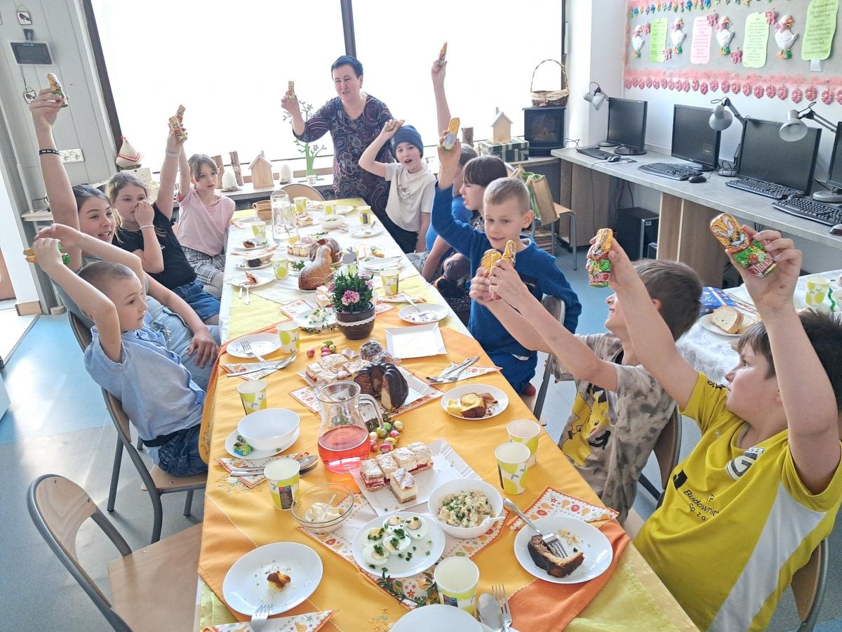 W naszych Placówkach Wsparcia Dziennego odbyły się uroczyste śniadania wielkanocne. Dzieci oraz wychowawcy zasiedli do przygotowanych wcześniej stołów, na których pojawiły się tradycyjne potrawy. Spotkania były okazją do rozmów na temat zwyczajów związanych ze zbliżającymi się świętami. Oczywiście nie mogło zabraknąć niespodzianek od wielkanocnego zająca.