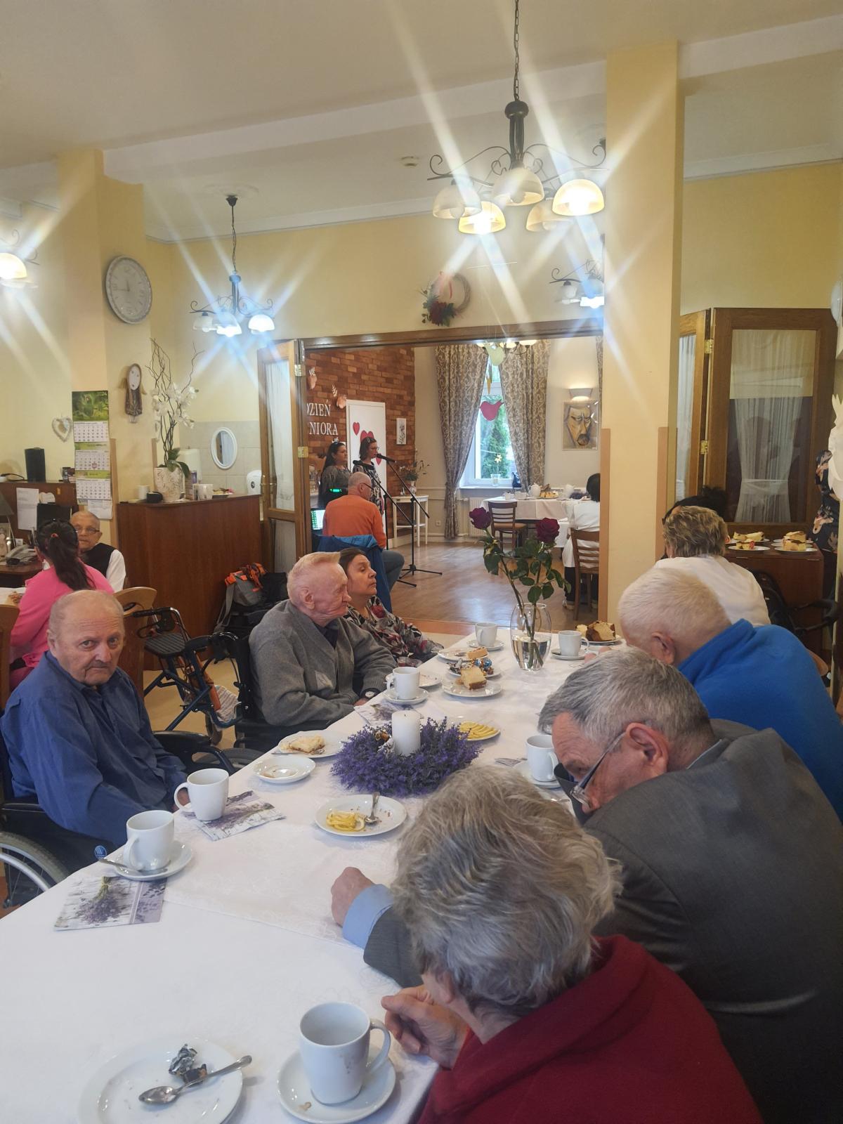 Seniorzy zostali zaproszeni również na uroczyste obchody Dnia Seniora w Domu Pomocy Społecznej "Leśna Oaza" w Słupsku. Mogli tam spotkać naszych dawnych podopiecznych i przyjemnie spędzić czas przy kawie i słodkim poczęstunku oraz dobrej muzyce.