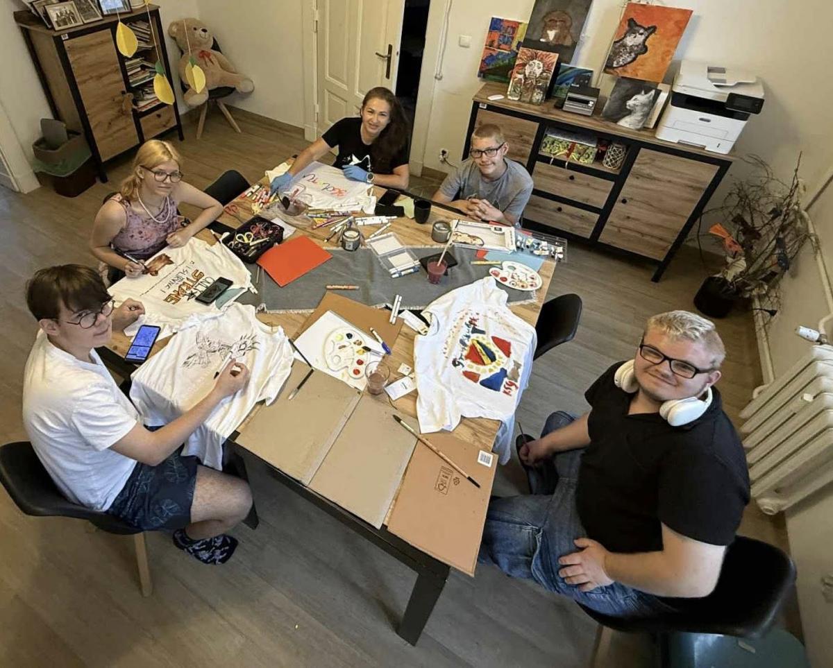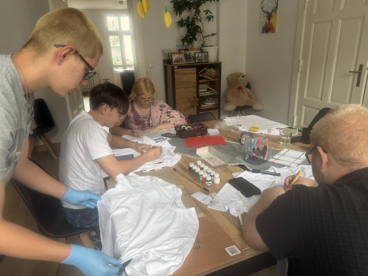 Podczas warsztatów młodzież uczestniczyła w różnorodnych zajęciach praktycznych i rozwojowych – od wspólnego planowania i organizacji działań, po rozmowy o emocjach, stresie i sposobach radzenia sobie w sytuacjach kryzysowych. Jednym z najbardziej twórczych i angażujących elementów był warsztat projektowania koszulek. Uczestnicy mieli okazję przygotować własne, unikalne projekty – część ozdobiła koszulki hasłami motywacyjnymi, a inni stworzyli autorskie wzory i rysunki. Ta aktywność pozwoliła młodzieży nie tylko rozwijać kreatywność, ale także wyrażać siebie i pokazać indywidualne spojrzenie na świat.