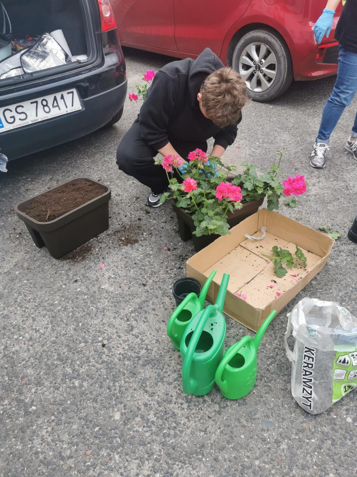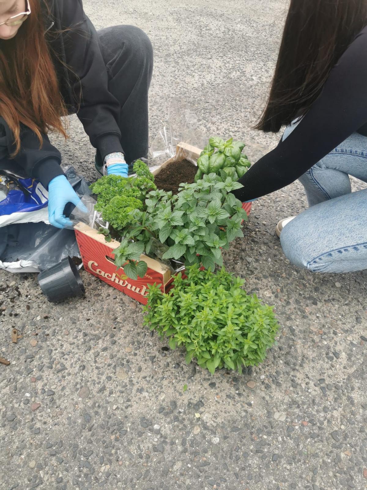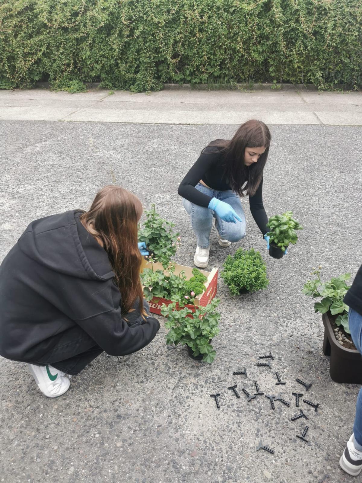 Młodzież podczas weekendu uczestniczyła w wyjeździe do szkółki roślin i marketu ogrodniczego. Zakupiono potrzebne materiały ogrodnicze, kwiaty, zioła. Obsadzono donice, skrzynki do ogródka społecznego z udziałem sąsiadów. Odbyły się warsztaty ogrodnicze: przygotowano winietki do donic, skrzynki z ziołami do „zakątkowej” kuchni.
