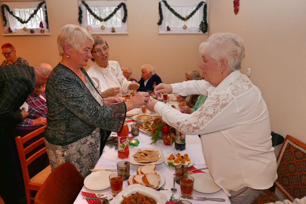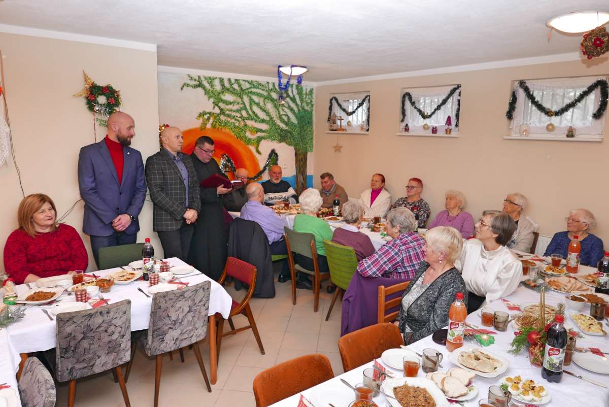 Wigilia odbyła się w piątek 13 grudnia w świetlicy mieszkań seniorów, będących pod specjalną opieką Miejskiego Ośrodka Pomocy Rodzinie w Słupsku. Seniorzy na wydarzenie zaprosili Dyrekcję MOPR, przedstawicieli Urzędu Miasta i Banku Żywności. Wyjątkowymi gośćmi w roli Świętego Mikołaja w tym roku byli przedstawicie pracowników banku PKO BP, którzy przygotowali 35 paczek z prezentami. W akcję zbierania świątecznych prezentów włączyli się wszyscy pracownicy trzech oddziałów banku w Słupsku. Pyszne świąteczne potrawy przygotowali pracownicy Zespołu pracy socjalnej nr 1 oraz Zespołu do spraw seniorów, osób niepełnosprawnych i niesamodzielnych nr 4.