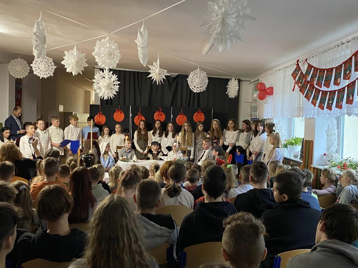 Wspólnie śpiewaliśmy także kolędy. Kadra i pracownicy szkoli zadbali o nas jak o własną rodzinę! Wychowankowie otrzymali ciepły posiłek, przygotowano też słodki poczęstunek oraz prezenty .