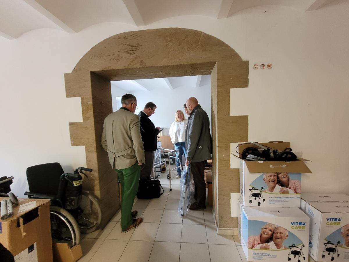 „Rycerze z Niemiec” udali się z wizytą do wypożyczalni MOPR przy ul. Kopernika by zobaczyć kolejny zakupiony, dzięki ich wsparciu i darowiźnie, sprzęt rehabilitacyjny, który posłuży mieszkańcom Słupska (szczegóły podamy w osobnym artykule). Obejrzeli również magazyn przy ul. Andersa, w którym znajdują się dary przekazane przez Joannitów (m.in. pampersy, pieluchomajtki, artykuły pielęgnacyjno-higieniczne).