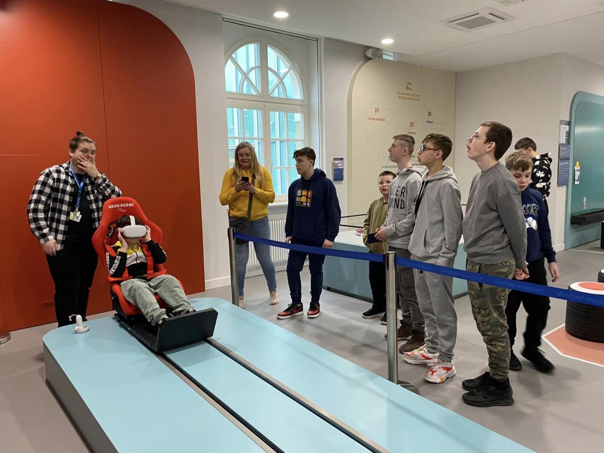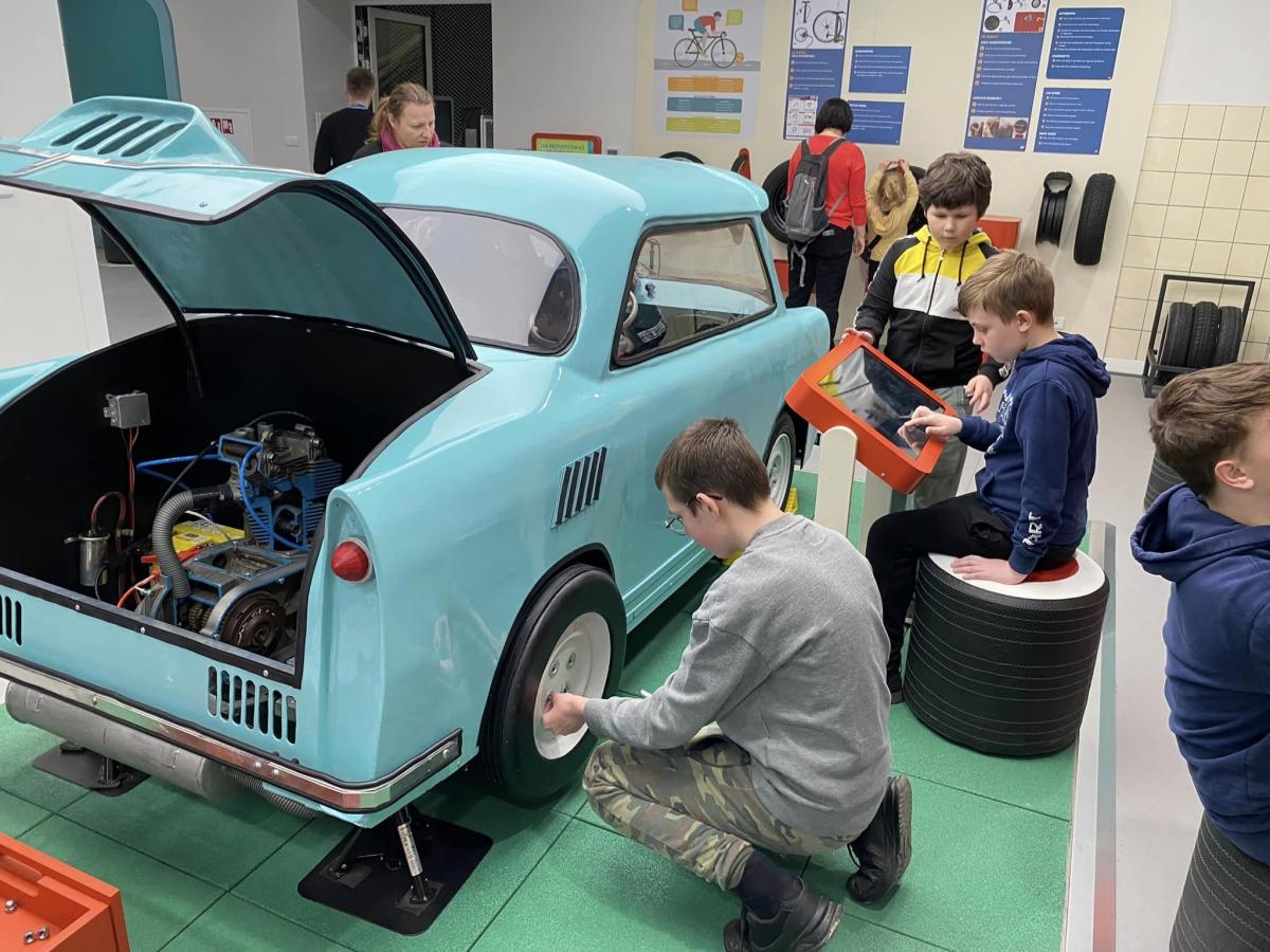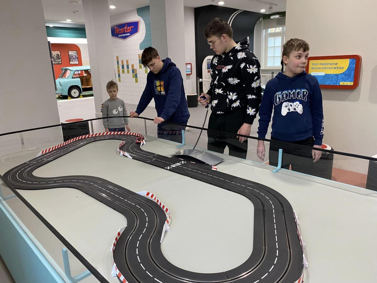 - Muzeum Techniki i Komunikacji w Szczecinie. Chłopcy eksperymentowali na interaktywnych stanowiskach. Dzięki symulatorowi jazdy dzieci dowiedziały się jak zachowują się pojazdy w trudnych warunkach pogodowych. Symulator zdarzeniowy pozwolił na naukę bezpieczeństwa ruchu drogowego. Podopieczni mieli także okazje do nauki zmiany koła, poprawy refleksu.
