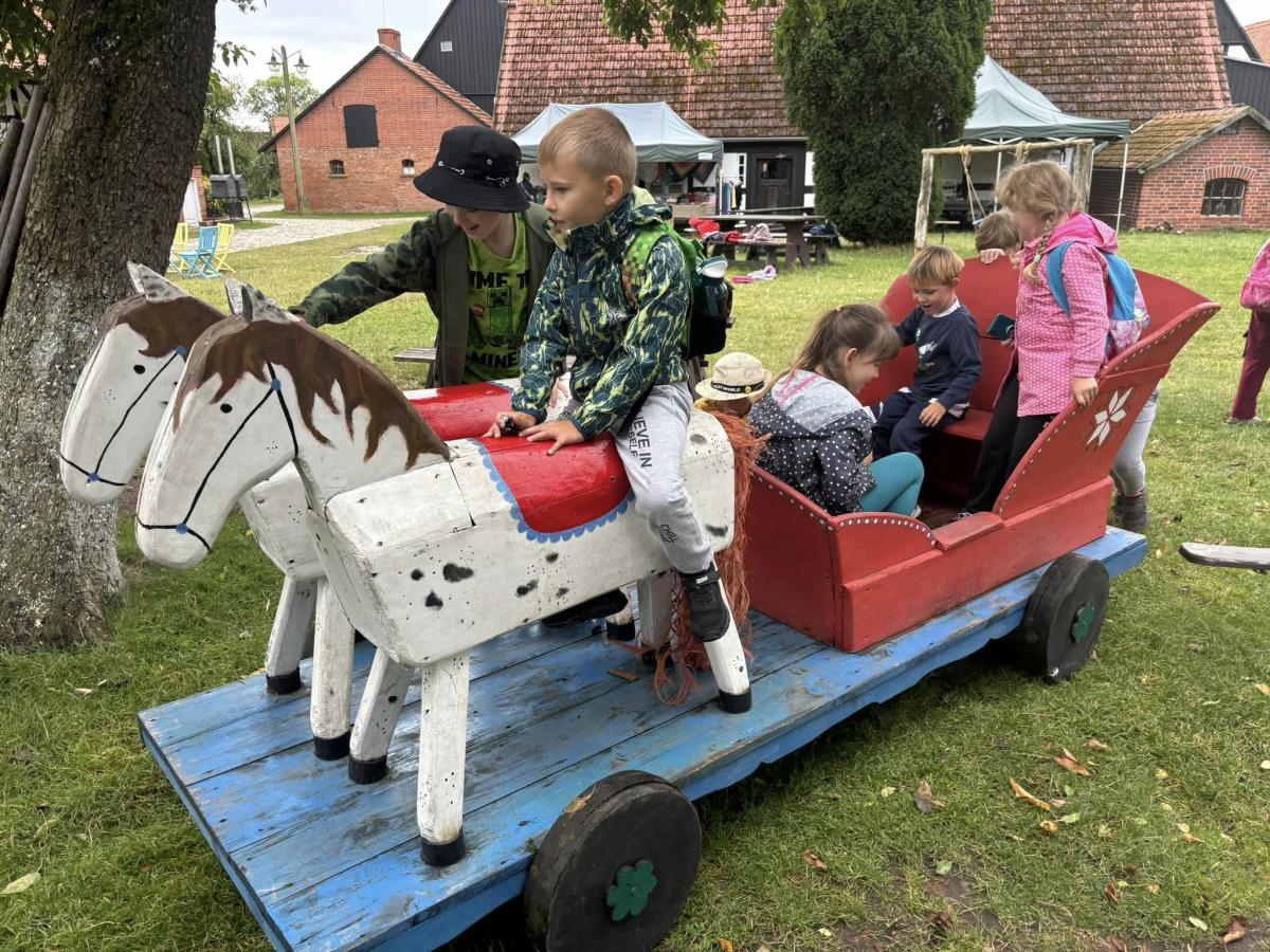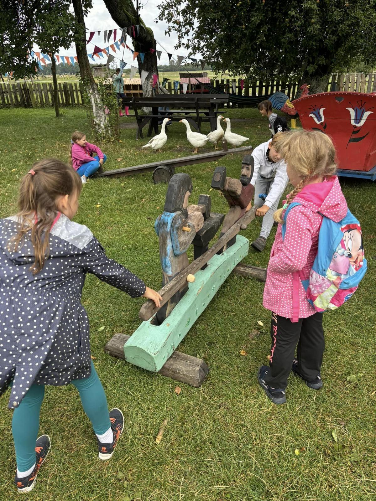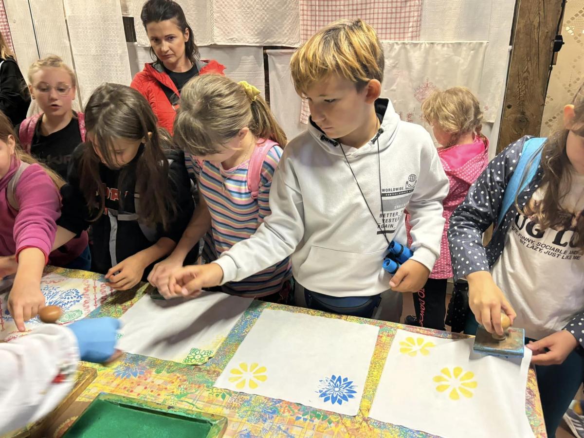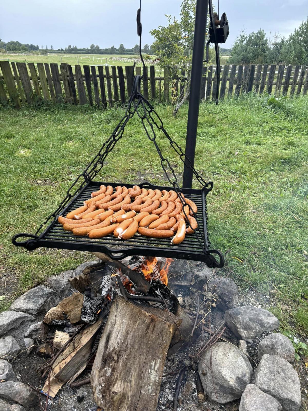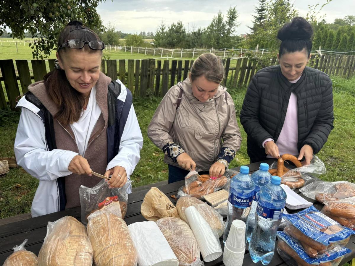 Na dzieci czekał wiejski plac zabaw, a także wystawcy z rękodziełem. Uczestnicy wycieczki zjedli ze smakiem pyszne racuszki usmażone na piecu kaflowym i kiełbaski upieczone nad ogniskiem.