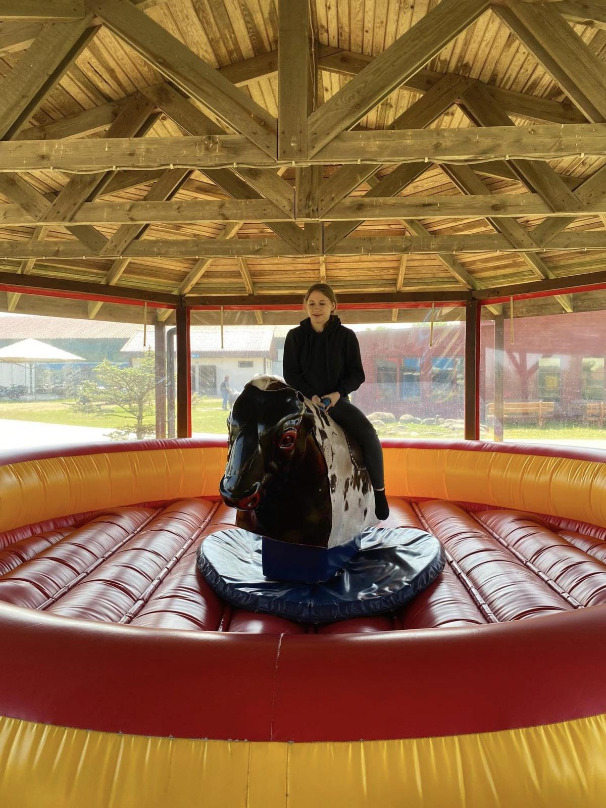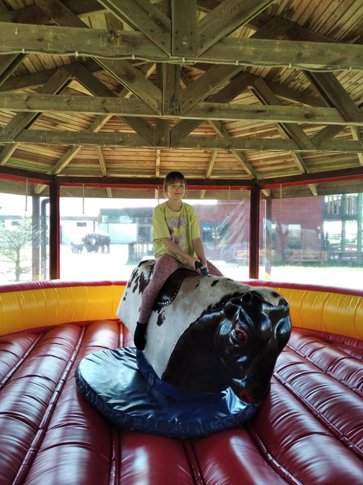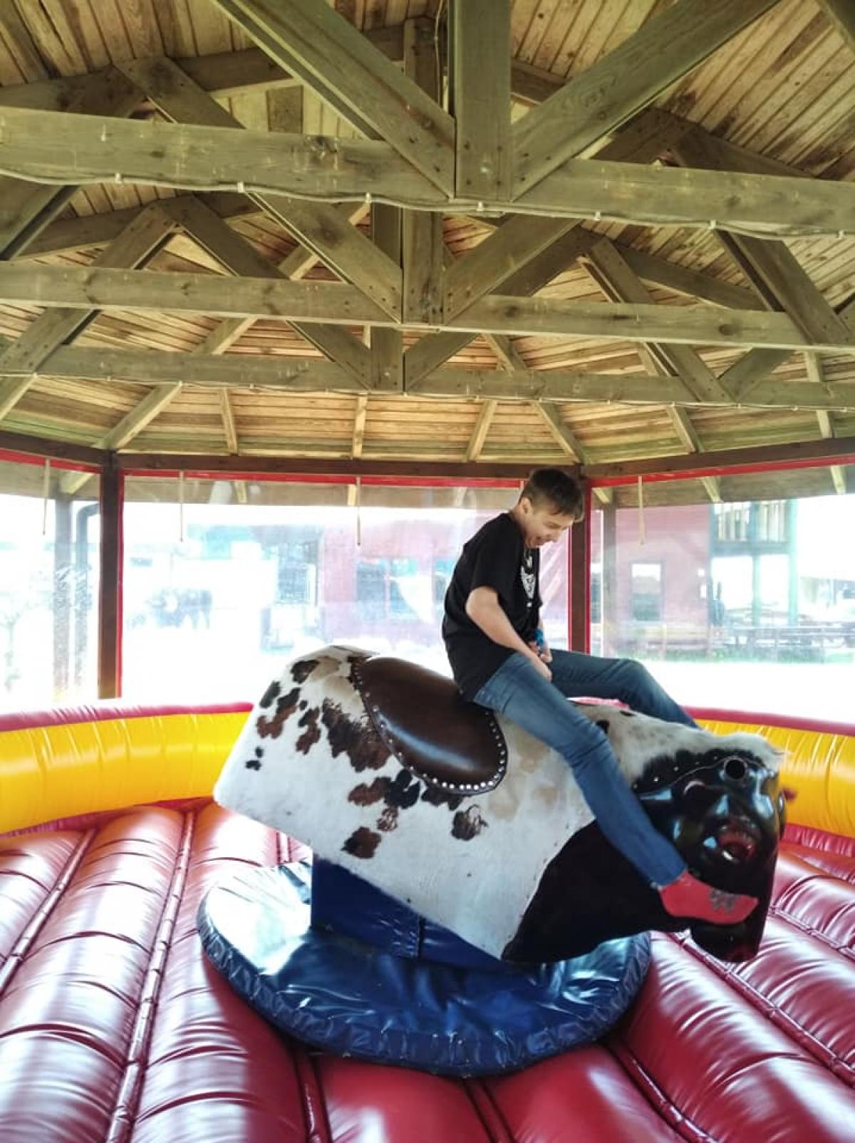 Odważniejsi wychowankowie zmierzyli się z groźnie wyglądającym mechanicznym bykiem.