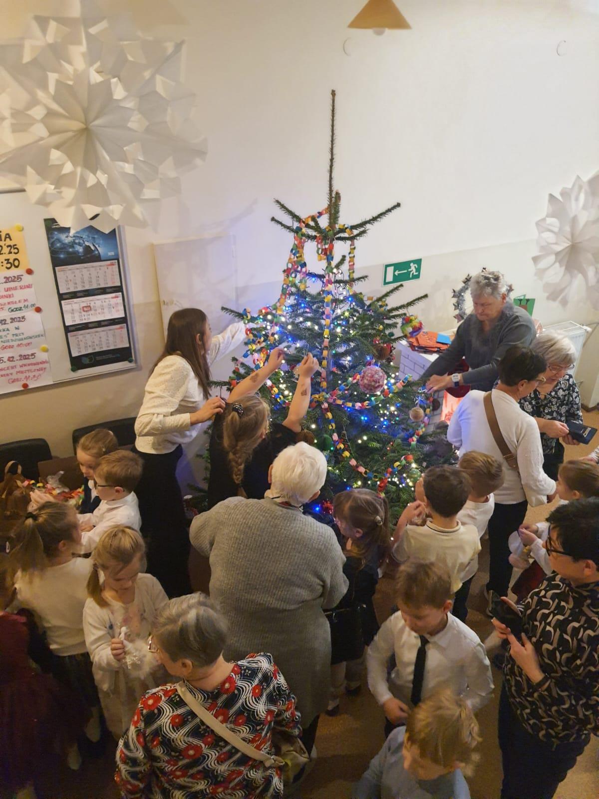 Grupa przedszkolaków zaprezentowała piękne kolędy, po czym przystąpiliśmy do wspólnego dekorowania naszej choinki własnoręcznie wykonanymi przez dzieci ozdobami, które dodały wesołego rodzinnego charakteru naszemu drzewku. Przedszkole brało również czynny udział w zbiórce darów do paczek dla naszych podopiecznych, które tego dnia zostały nam oficjalnie przekazane. W ramach wdzięczności dzieci zostały nagrodzone wielkimi brawami, bezgraniczną wdzięcznością i słodkim upominkiem od naszych seniorów. Takie spotkania, zwłaszcza w okresie przedświątecznym rozpalają serca i wnoszą szereg pozytywnych emocji.