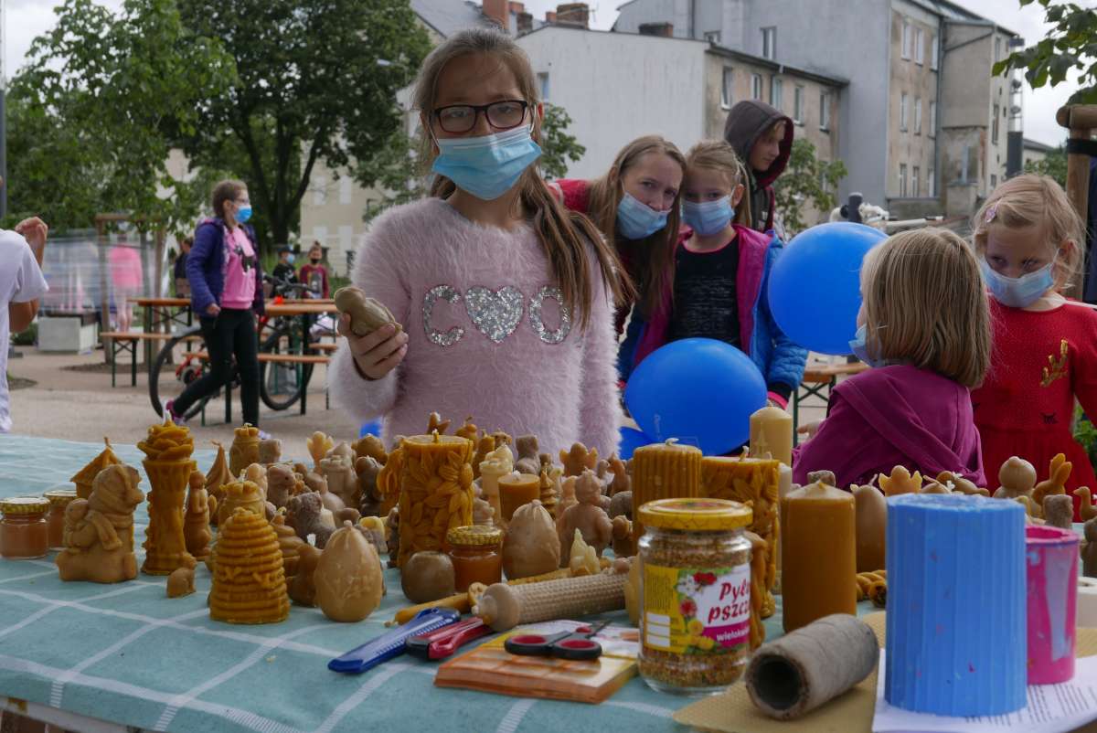 Bardzo miłą niespodziankę sprawił nam Pan Krzysztof Startek z gminy Kobylnica, który jest pszczelarzem i prowadzi pasiekę „Królowa Marysieńka”. Można było posłuchać ciekawej prelekcji na temat pszczół, a przede wszystkim zobaczyć je jak pracują na rzecz stworzenia miodu. Uczestnicy pikniku podziwiali piękne figury z pszczelego wosku, a dzieci uczestniczyły w warsztatach tworzenia świec.